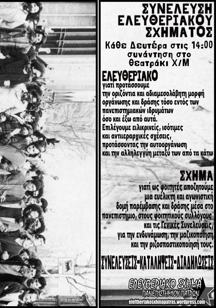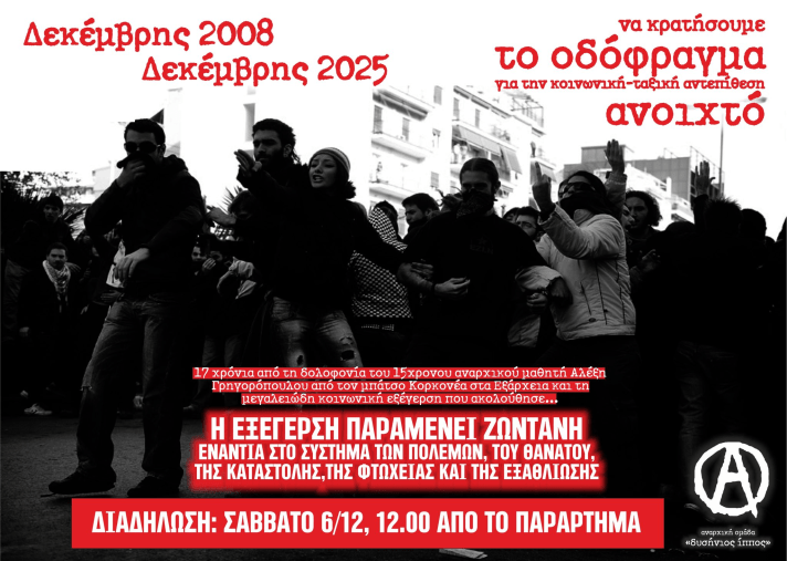 Η εξέγερση του Δεκέμβρη, έπειτα από τη δολοφονία του αναρχικού μαθητή Α.Γρηγορόπουλου από τον μπάτσο Κορκονέα στα Εξάρχεια, αποτέλεσε ταυτόχρονα απάντηση και ερώτηση.
