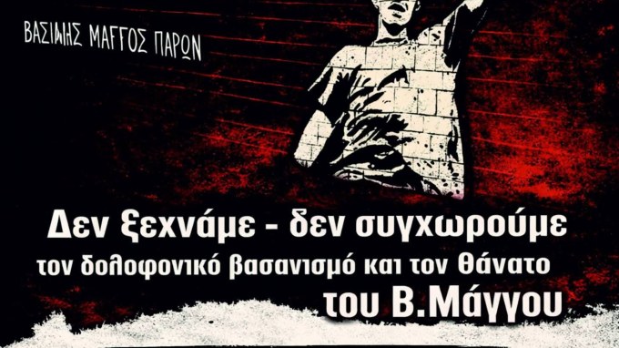Ο βασανισμός του Βασίλη Μάγγου δεν αποτελεί ένα τυχαίο περιστατικό της ούτως η άλλως ασύδοτης αστυνομικής βίας. Ο βασανισμός του ήταν μια μεθοδευμένη στοχοποίηση ενός κοινωνικού αγωνιστή μιας ευάλωτης κοινωνικής ομάδας προκειμένου να καμφθεί το κίνημα ενάντια στην καύση σκουπιδιών που το καλοκαίρι του 2020 πίεζε ασφυκτικά τα κυβερνητικά και επιχειρηματικά κέντρα.