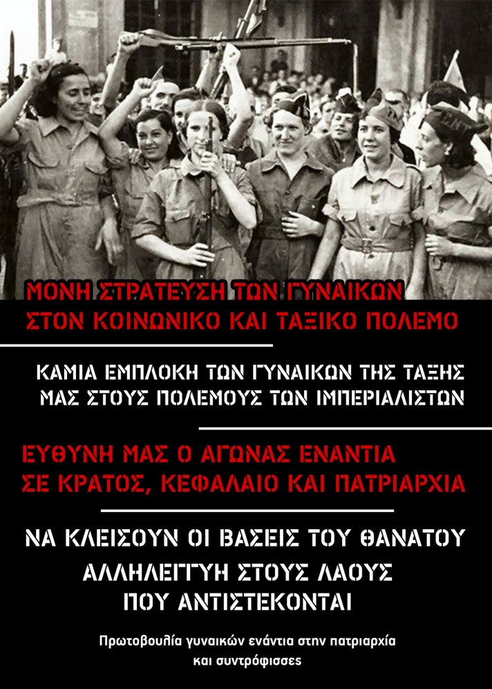 Ανακοίνωση και αφίσα που κολλιέται στην Πάτρα για την εθελοντική στράτευση των γυναικών