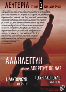 ΛΕΥΤΕΡΙΑ ΣΤΟΥΣ 3 ΤΗΣ 6 ΜΑΗ – ΑΛΛΗΛΕΓΓΥΗ ΣΤΟΥΣ ΑΠΕΡΓΟΥΣ ΠΕΙΝΑΣ ΖΑΝΤΟΡΟΖΝΙ, ΚΥΡΙΑΚΟΠΟΥΛΟ — ΔΕΚΕΜΒΡΗΣ 2006