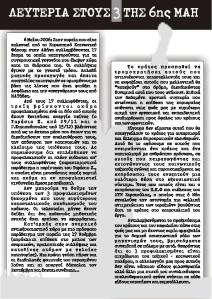 Κείμενο και αφίσσα απο την “αναρχική πρωτοβουλία αλληλεγγύης στους 3 της 6ης Μάη” η οποία συνεχίστηκε και το 2007 κρατώντας σε κατάληψη το Παράρτημα του Πανεπιστημιού ως κέντρο αντιπληροφόρησης και δράσης για παραπάνω απο δύο μήνες.