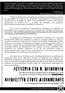 Κείμενο που μοιράστηκε σε μικροφωνική που πραγματοποιήθηκε στην πλ.Όλγας την Πέμπτη 30 Ιουλίου σε ένδειξη αλληλεγγύης στον αιχμάλωτο της εξέγερσης του Δεκέμβρη Θ.Ηλιόπουλο. Share this: Click to share on Facebook (Opens in new window) Facebook Click to share on X (Opens in new window) X Like Loading... Related