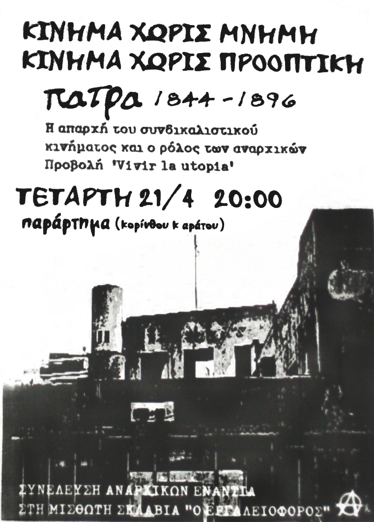Παρουσίαση της μπροσουρας “Πάτρα 1877-1896: Η απαρχή του συνδικαλιστικού κινήματος και ο ρόλος των αναρχικών”.