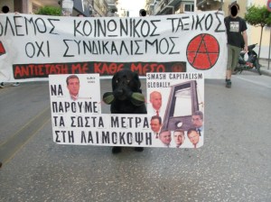 Συγκέντρωση και πορεία από το Παράρτημα είχε καλεστεί στις 18.00 από τη συνέλευση αναρχικών ενάντια στη μισθωτή σκλαβιά, “ο εργαλειοφόρος”. Η πορεία, στην οποία συμμετείχαν περισσότερα από 200 άτομα, διέσχισε κεντρικούς δρόμους της Πάτρας με κεντρικό πανό “Πόλεμος κοινωνικός-ταξικός όχι συνδικαλισμός – αντίσταση με κάθε μέσο”. Μοιράστηκαν εκατοντάδες κείμενα, πετάχτηκαν πάρα πολλά τρικάκια, γράφτηκαν συνθήματα σε τοίχους και τζαμαρίες τραπεζών και καταστημάτων. Οι διαδηλωτές φώναζαν συνθήματα ενάντια στην ολομέτωπη επίθεση που εξαπολύουν το κράτος και τ’αφεντικά απέναντι στην πλειοψηφία της κοινωνίας αλλά και αλληλεγγύης στους φυλακισμένους και διωκόμενους αγωνιστές. Από πίσω ακολουθούσε μια διμοιρία ματ η οποία σε κάποιο σημείο επιχείρησε να πλησιάσει αρκετα κοντά, χωρίς όμως ιδιαίτερη επιτυχία αφού στο πίσω μέρος είχε σχηματιστεί ισχυρή περιφρούρηση από ομάδα συντρόφων. Μετά τις 20.30 η πορεία επέστρεψε στο Παράρτημα.