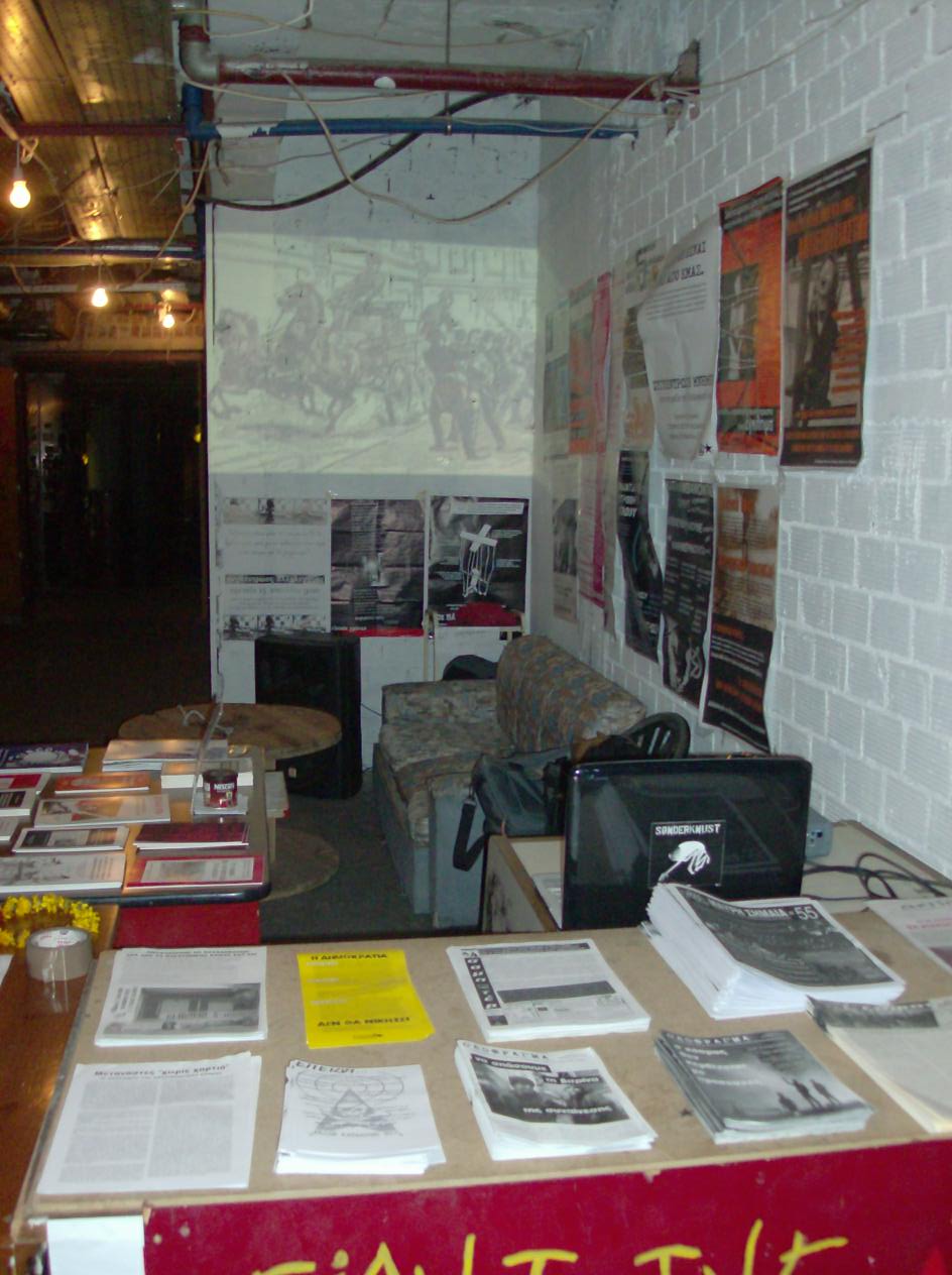 Το απόγευμα της ίδιας μέρας πραγματοποιήθηκε στο Παράρτημα μια πολύ ενδιαφέρουσα εκδήλωση με το σύντροφο αγωνιστή Σ. Κατσαρό πάνω στο βιβλίο του “εγώ ο προβοκάτορας, ο τρομοκράτης” με τη συμμετοχή αρκετού κόσμου, όπου συνεχίστηκε με συζήτηση γύρω από τα θέματα που απασχολούν το επαναστατικό κίνημα του σήμερα, τις προσπάθειες διεύρυνσης και τις προοπτικές του κοινωνικού-ταξικού αγώνα. Πριν την έναρξη της εκδήλωσης προβλήθηκε αυτοοργανωμένο βίντεο συντρόφων από την Αθήνα διάρκειας 20′ για τα γεγονότα του Σικάγο το 1886.
