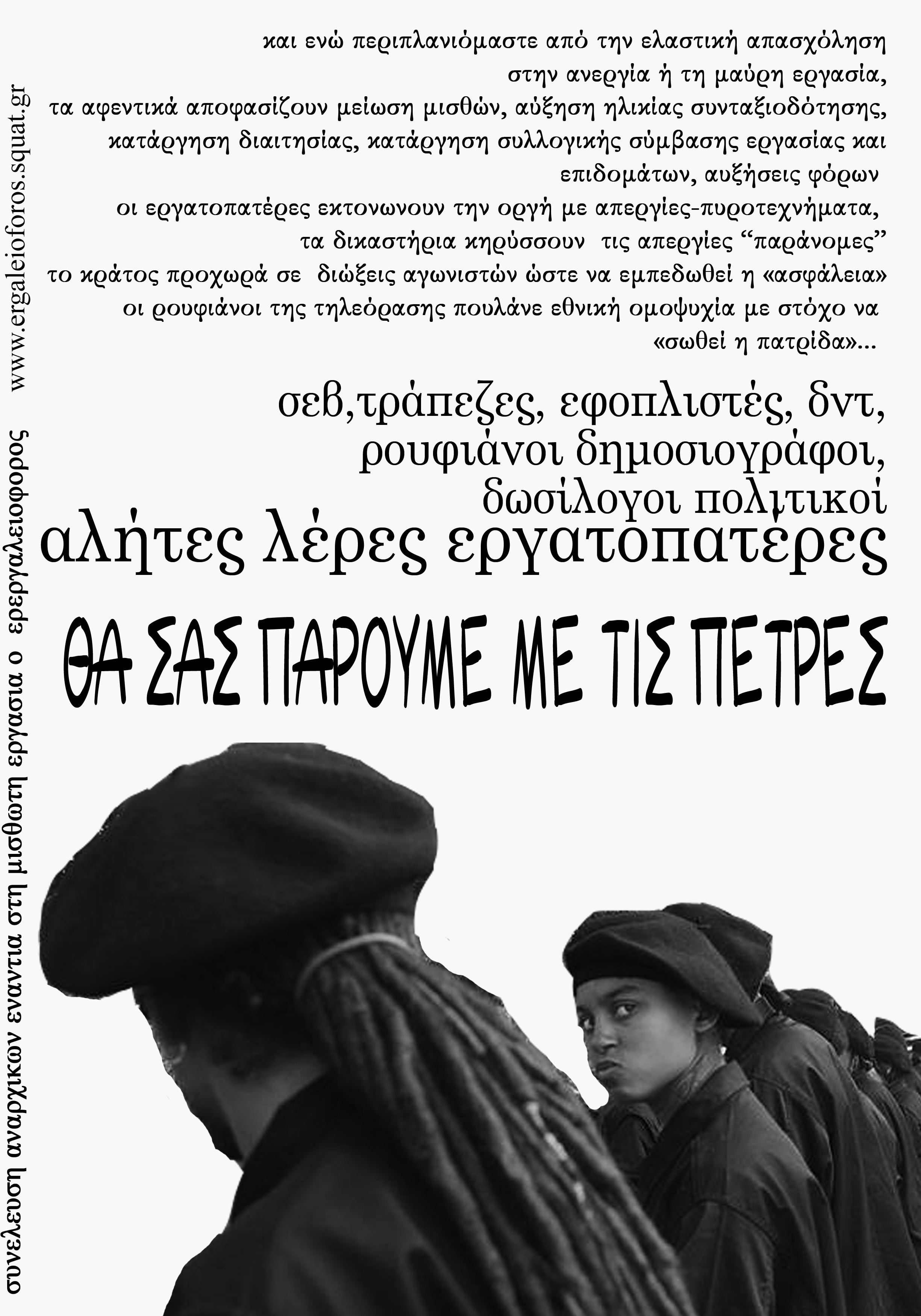 Αφισάκι απο την συνέλευση αναρχικών ενάντια στην μισθωτή σκλαβιά “ο εργαλειοφόρος”, που κολλήθηκε ενόψει της απεργίας της 8ης Ιουλίου. Share this: Share on Facebook (Opens in new window) Facebook Share on X (Opens in new window) X Like Loading... Related
