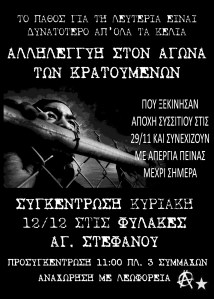 ΑΛΛΗΛΕΓΓΥΗ ΣΤΟΝ ΑΓΩΝΑ ΤΩΝ ΦΥΛΑΚΙΣΜΕΝΩΝ ΓΙΑ ΑΞΙΟΠΡΕΠΕΙΑ ΠΟΥ ΑΠΟ 29 ΝΟΕΜΒΡΗ ΕΧΟΥΝ ΞΕΚΙΝΗΣΕΙ ΑΠΟΧΗ ΣΥΣΣΙΤΙΟΥ ΚΑΙ ΣΥΝΕΧΙΖΟΥΝ ΜΕ ΑΠΕΡΓΙΑ ΠΕΙΝΑΣ ΠΡΟΣΥΓΚΕΝΤΡΩΣΗ ΣΤΗΝ ΠΛ. 3 ΣΥΜΜΑΧΩΝ ΤΗΝ ΚΥΡΙΑΚΗ 12 ΔΕΚΕΜΒΡΗ ΣΤΙΣ 11 π.μ. ΑΝΑΧΩΡΗΣΗ ΜΕ ΛΕΩΦΟΡΕΙΑ Share this: Share on Facebook (Opens in new window) Facebook Share on X (Opens in new window) X Like Loading... Related