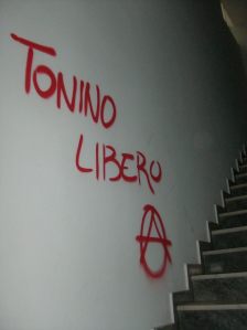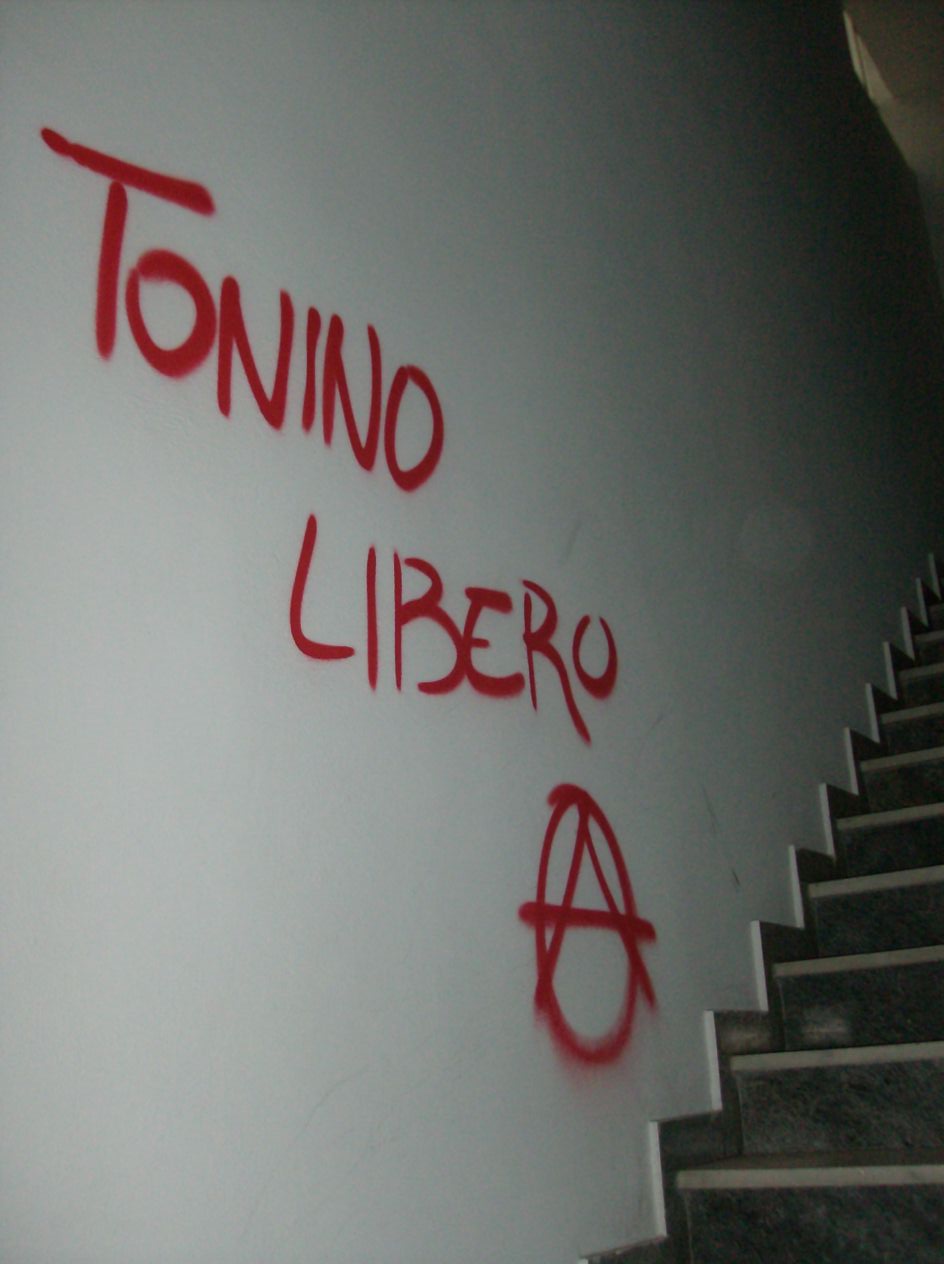 Ένας κοινωνικός-ταξικός πόλεμος που αποβλέπει στον πλήρη κατακερματισμό του ατόμου, στην υποταγή του, τη στέρηση της ελευθερίας του, τη διάλυση της διαφορετικότητας της εκάστοτε προσωπικότητας, τον πλήρη έλεγχο και εξαναγκασμό του να διοχετεύει την δύναμη και ενεργεία του προς όφελος των εξουσιαστών. Σήμερα περισσότερο από κάθε άλλη εποχή η εξουσία γνωρίζοντας ότι όλος ο κόσμος είναι ένα καζάνι που βράζει συνεχώς και αυξανόμενα, και αφού το δυτικό μοντέλο της ως δήθεν “κράτος πρόνοιας” ,αποτυγχάνει να διασφαλίσει τα συμφέροντα της μπροστά στην σύγχρονη κοινωνική αναταραχή. Χάνει το δημοκρατικό της προσωπείο νοηματοδοτώντας πλέον την ύπαρξη της και μέσω του δόγματος της ασφάλειας-ωμής καταστολής. Δημιουργώντας και αναπαράγοντας το φόβο και την τρομοκρατία και παριστάνοντας τον προστάτη μας στοχοποιεί ανθρώπους ως επικινδύνους, εχθρούς, τρομοκράτες. Στόχος πέρα από τον αποπροσανατολισμό της κοινωνίας από τα πραγματικά της προβλήματα είναι να καταπνίξει κάθε ριζοσπαστικοποιημένη φωνή και δράση που οξύνει τον κοινωνικό-ταξίκο πόλεμο σε οποιοδήποτε πεδίο του. Η εγκληματικοποιήση και η σύλληψη ενός συντρόφου αποτελούν τα πιο αποτελεσματικά υλικά μέσα που χρησιμοποιούνται από την εξουσία για να αποθαρρύνει κάθε ριζοσπαστικοποίηση παντού και πάντα. Σε αυτό το πλαίσιο εντάσσεται και η σύλληψη του Τονίνο με πρόσχημα τα γεγονότα της 1ης Μάη 2010 στη Νάπολι. Προσβλέποντας τόσο στην καθεαυτή απενεργοποίηση-μέσω ενός καθεστώτος ομηρίας-του ιδίου, τόσο και στην καταστολή εξ αρχής κάθε ανατρεπτικής ιδέας και δράσης ως κοινωνικά επικίνδυνης. Για εμάς κοινωνικά επικίνδυνη είναι καθεαυτή η ύπαρξη της εξουσίας, των φυλακών, των κέντρων κράτησης μεταναστών, των εργατικών δολοφονιών-τραυματισμών,της καταστολής μαζικών κοινωνικών αγώνων και όλων των υπερασπιστών τους ( ρουφιάνοι, παρακρατικοί, φασίστες ). Σε οποιαδήποτε γωνιά του πλανήτη η εξουσία έχει τα ίδια συμφέροντα, την εξασφάλιση των καπιταλιστών, των αφεντικών και γενικά των ισχυρών. Προσπαθεί να ενδυναμώσει τους θεσμούς της ώστε να ενισχύει την κυριαρχία και την επιβολή της σε όλο και μεγαλύτερα κοινωνικά κομμάτια. Εμείς βιώνοντας την πραγματικότητα απ’τον ελλαδικό χώρο, βλέπουμε ξεκάθαρα την επίθεση μέσω της καθημερινής καταστολής των κατασκευασμένων αποδεικτικών στοιχείων, την ποινικοποίηση ιδεών και φιλικών σχέσεων και την εγκληματικοποίηση κάθε μορφής ριζοσπαστικού αγώνα.
