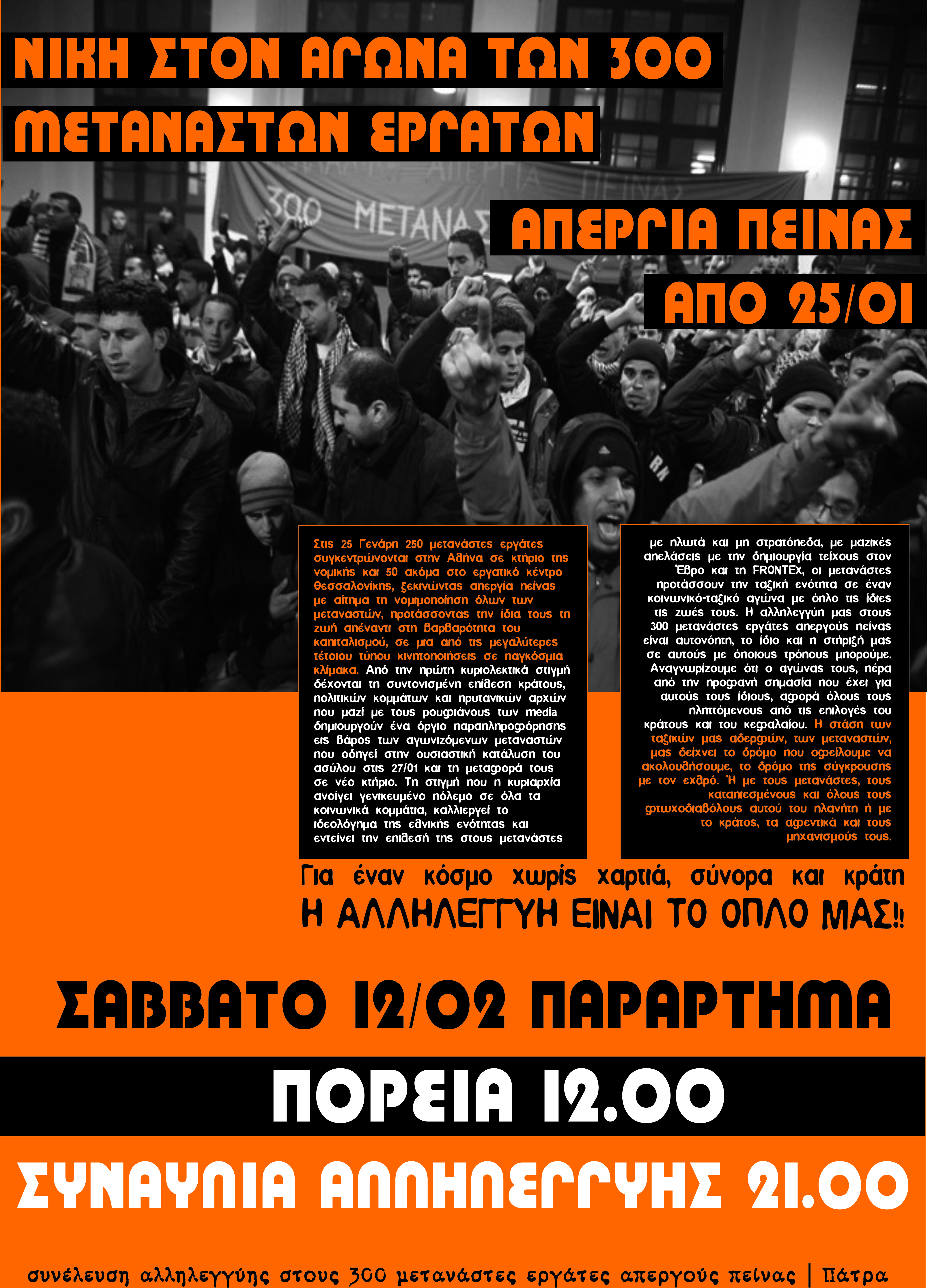 συνέλευση αλληλεγγύης στους 300 μετανάστες εργάτες απεργούς πείνας