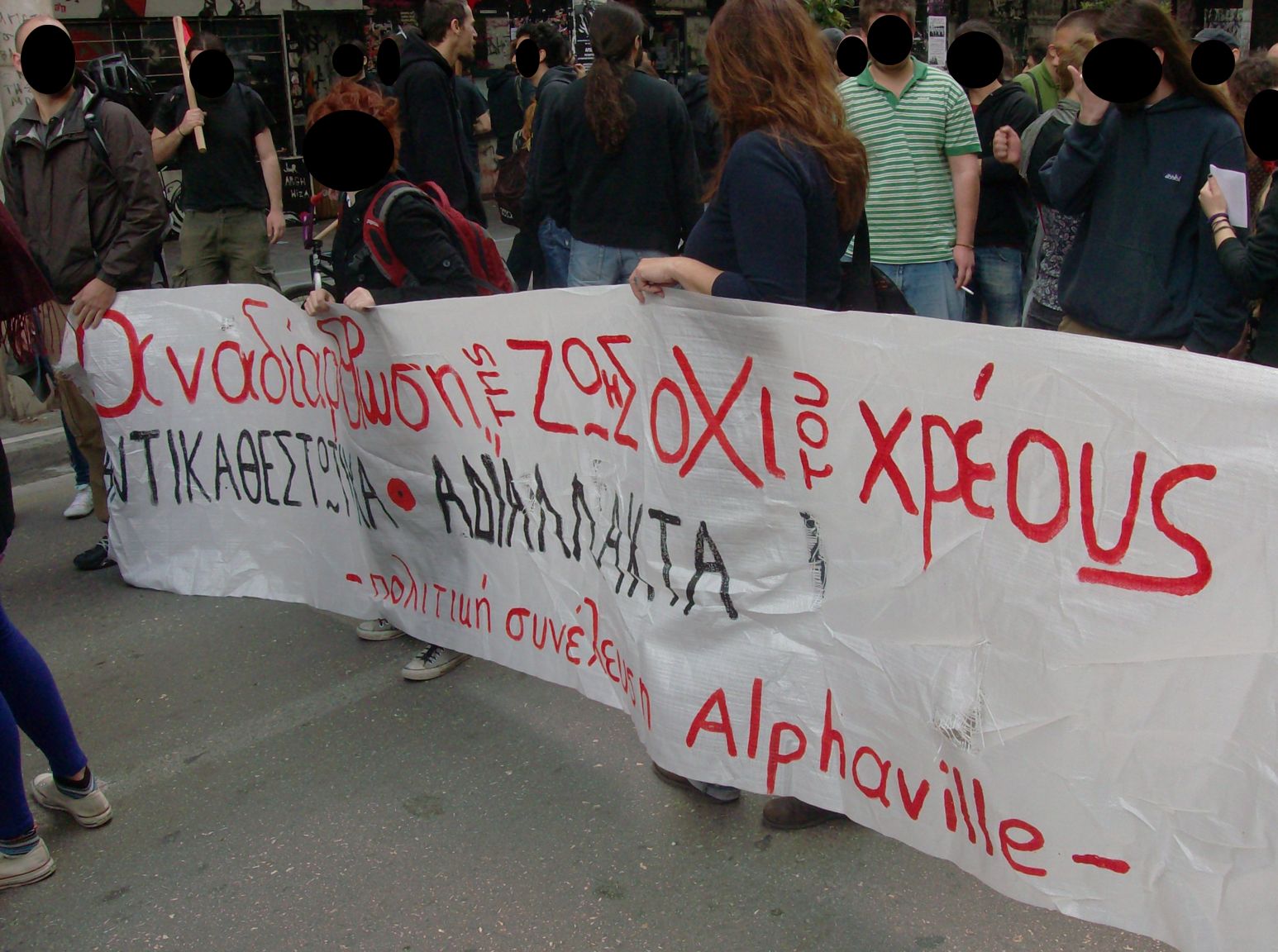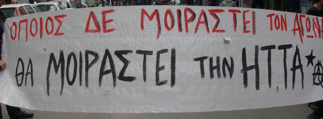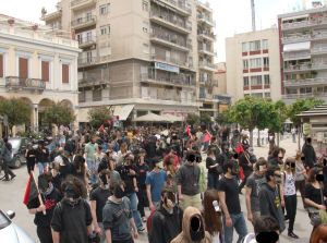Περισσότερα από 250 άτομα συμμετείχαν στην Αυτόνομη Πορεία που καλέστηκε στο Παράρτημα από τη συνέλευση αναρχικών ενάντια στη μισθωτή σκλαβιά “ο εργαλειοφόρος” και από το συλλογικό εγχείρημα λόγου και δράσης “Πέρασμα”. Η συγκέντρωση ήταν καλεσμένη για τις 11 το πρωί. Από νωρίς είχε στηθεί μικροφωνική και μοιράζονταν κείμενα. Ομάδα συντρόφων πραγματοποίησε παρέμβαση και στη συγκέντρωση του εργατικού κέντρου στην πλ. Όλγας. Κατα τη διάρκεια της συγκέντρωσης επικράτησε ένταση ανάμεσα σε συντρόφους και μέλη της περιφρούρησης του πα.με. το οποίο πέρασε μπροστά από το Παράρτημα.