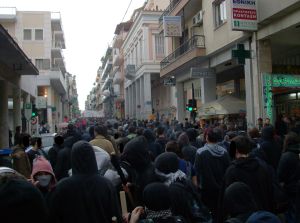 Γύρω στις 7.30 το απόγευμα ξεκίνησε η αντικατασταλτική διαδήλωση στην Πάτρα από το Παράρτημα με τη συμμετοχή περίπου 1000 ατόμων. Παρά τη βροχή ο κόσμος συμμετείχε μαζικά και έδωσε μια πρώτη απάντηση στην πρωτοφανή κατασταλτική επίθεση που δέχτηκε η απεργιακή διαδήλωση της 11ης Μαη στην Αθήνα αλλά και στα πογκρόμ που εξαπολύουν παρακρατικοί φασίστες στο κέντρο της Αθήνας σε βάρος μεταναστών.