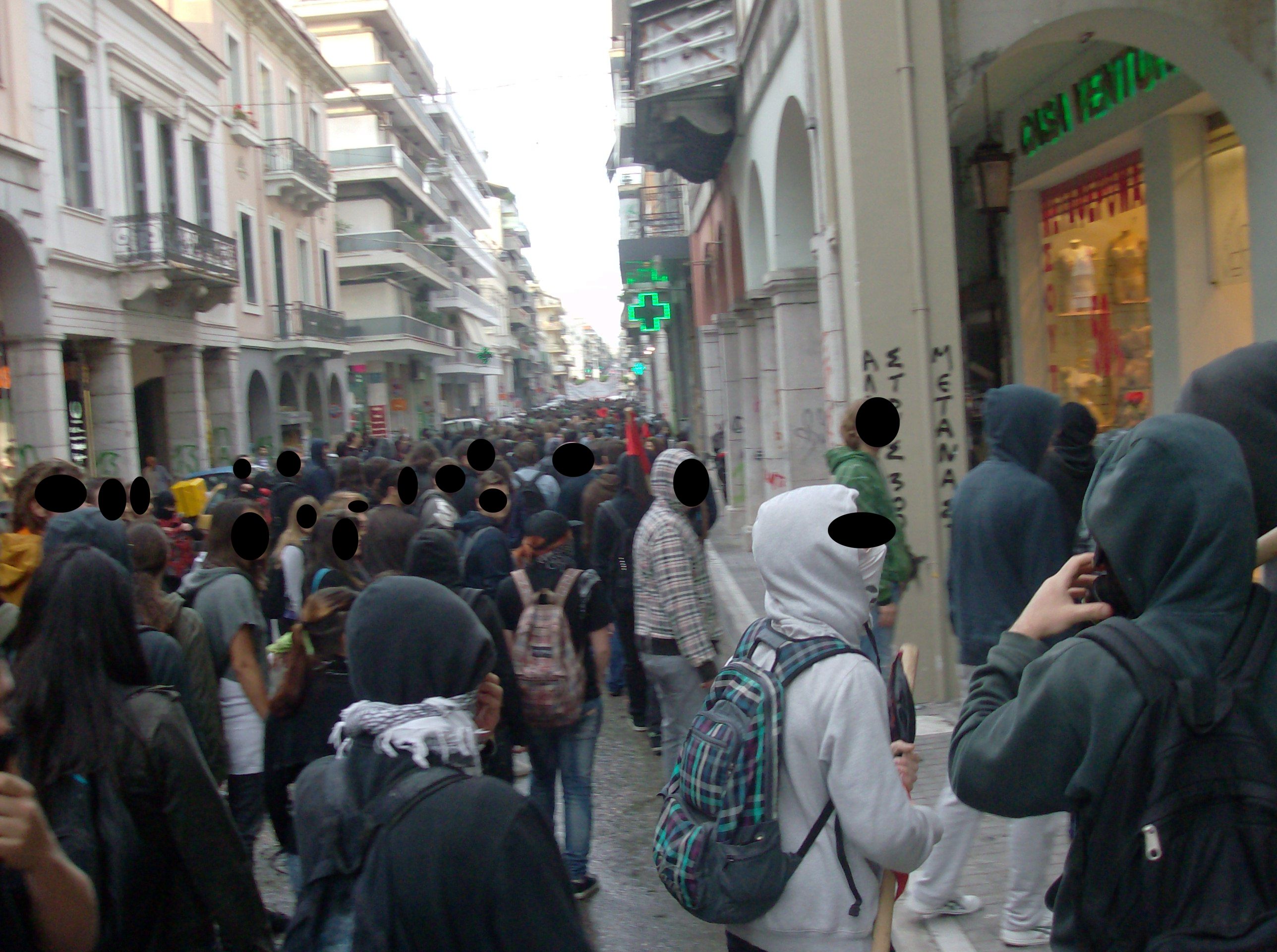 Κατά τη διάρκεια της πορείας πραγματοποιήθηκαν επιθέσεις σε 2 καταστήματα τραπεζών και στα γραφεία της νομαρχιακής επιτροπής του λα.ος στην οδό Κορίνθου, όπου ομάδα συντρόφων εισέβαλε στο εσωτερικό τους στο δεύτερο όροφο και τα κατέστρεψε. Η πορέια ολοκληρώθηκε στο Παράρτημα γύρω στις 8.30