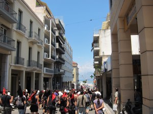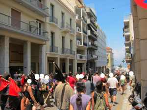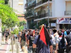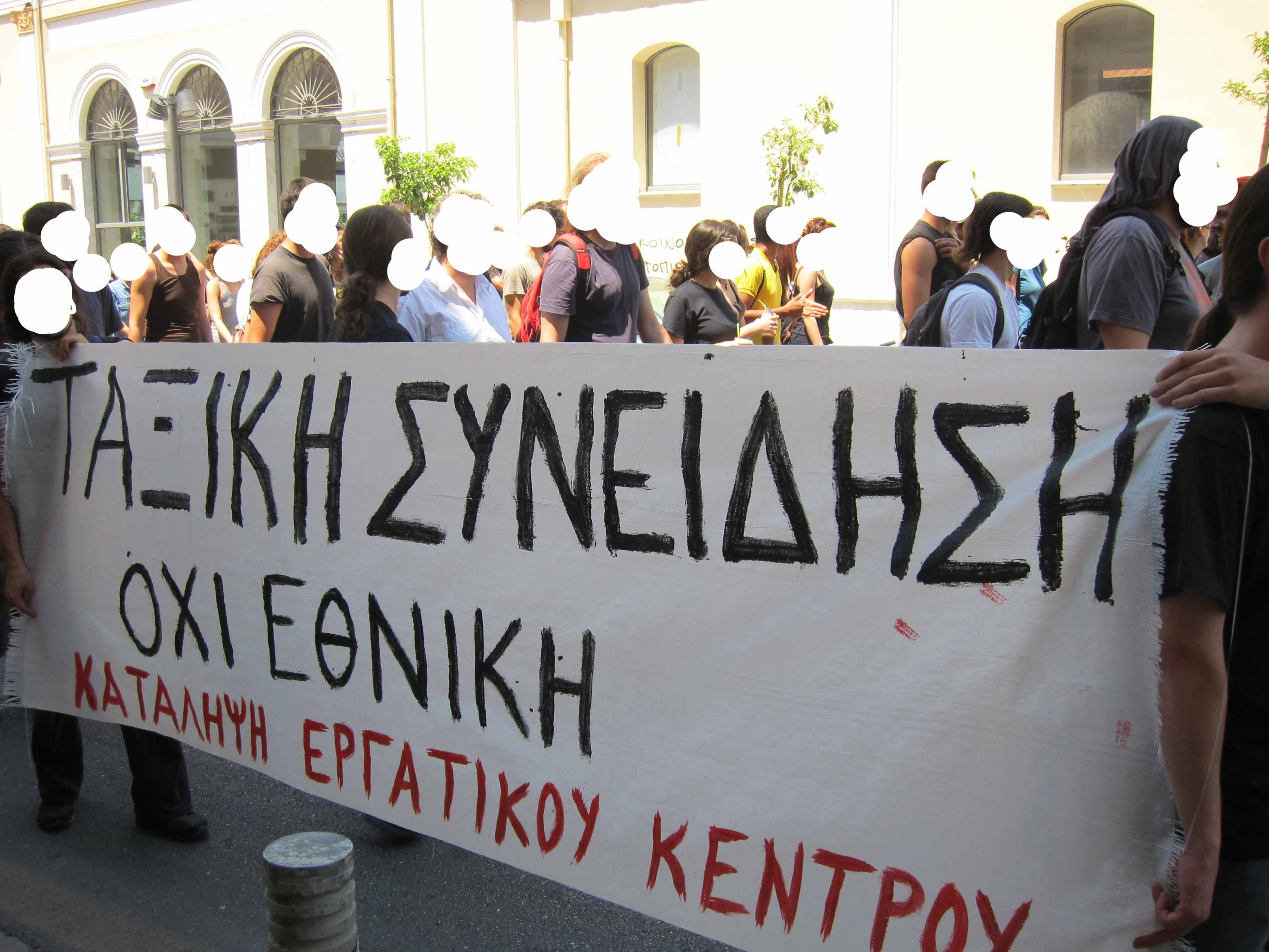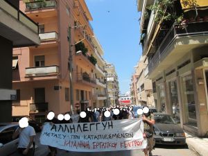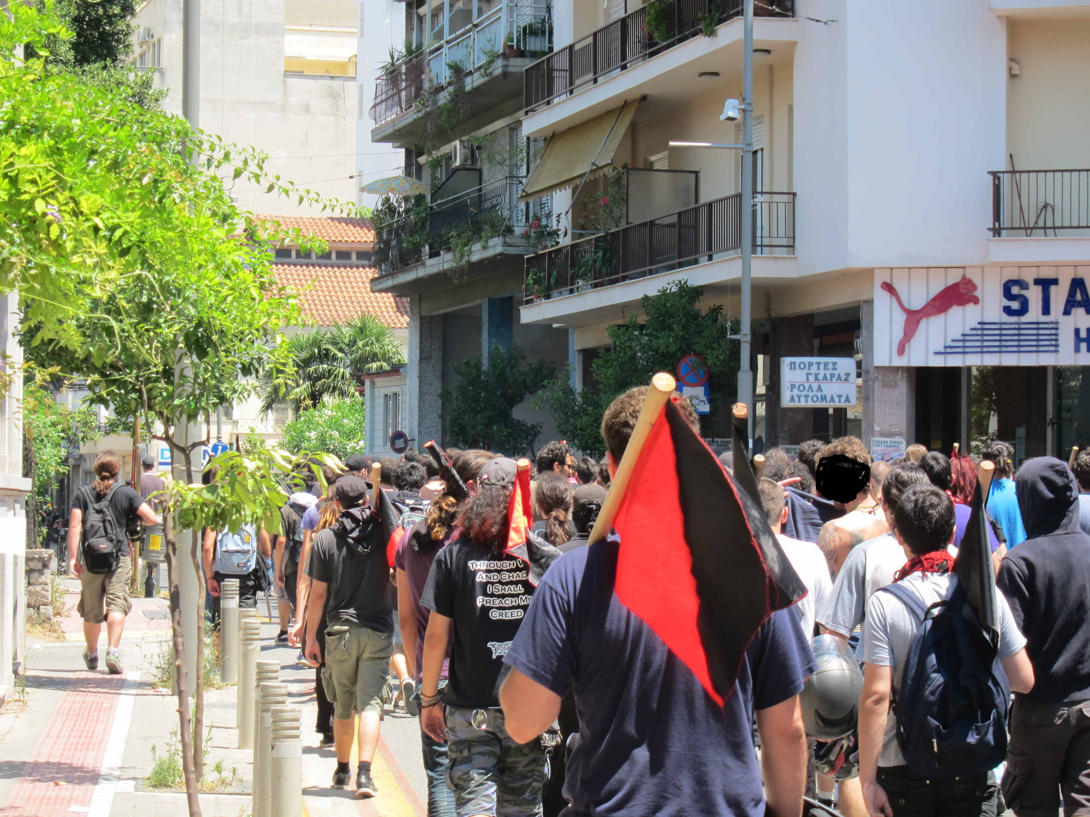 Σήμερα το πρωί πραγματοποιήθηκε πορεία από το κατειλημμένο Εργατικό Κέντρο με τη συμμετοχή 400 ατόμων. Η διαδήλωση κινήθηκε από το κέντρο προς γειτονιές μέσω των οδών Αγ. Ανδρέου, ελλ. στρατιώτου, Λευκωσίας, Ζακύνθου, Αγ. Σοφίας, Κων/πόλεως. Υπήρχε πολύ δυνατός παλμός, γραφονταν σπρέι και πετάχτηκαν χιλιάδες τρικάκια. Η πορεία κράτησε σχεδόν 2 ώρες. Η αστυνομία ακολουθούσε από πίσω με 2 διμοιρίες και 7-8 μηχανές δι.ας.