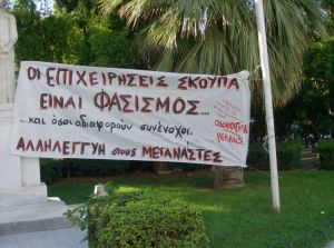 Η συγκέντρωση κράτησε περισσότερο από 2 ώρες, μοιράστηκαν εκατοντάδες κείμενα, ενώ υπήρχαν και 2 πανό, ένα που έγραφε “οι επιχειρήσεις σκούπα είναι φασισμός …κι όσοι σιωπούν συνένοχοι — Αλληλεγγύη στους μετανάστες” κι ενα άλλο που έγραφε “Με τους μετανάστες είμαστε μαζί, σκούπα σε αφεντικά, μπάτσους και ναζί”.