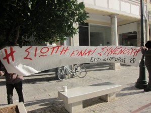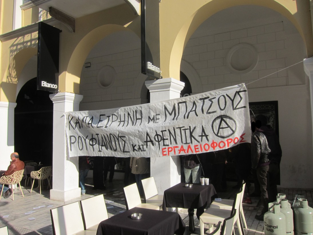 Το Σάββατο 26/11 το πρωί περίπου 50-60 σύντροφοι και συντρόφισσες πραγματοποίησαν 4ωρο αποκλεισμό στο κατάστημα blanco στην οδό Αγ. Νικολάου. Το συγκεκριμένο μαγαζί μαζί με τους μπάτσους είναι υπεύθυνο για τo θάνατο 32χρονης γυναίκας στα κρατητήρια της Ασφάλειας Πατρών, καθώς αυτή συνελήφθη ύστερα από καταγγελία του μαγαζιού ότι έκλεψε 3 μπλουζάκια.
