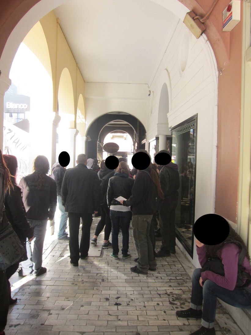 Ο αποκλεισμός κράτησε από τις 10 το πρωί ως τις 2 το μεσημέρι, μοιράστηκαν χιλιάδες κείμενα τα οποία ο κόσμος έπαιρνε ανταποκρινόμενος θετικά, πετάχτηκαν πάρα πολλά τρικάκια εντός και εκτός μαγαζιού, στήθηκε μικροφωνική και φωνάχτηκαν συνθήματα, ανάμεσα στα οποία και τα εξής: