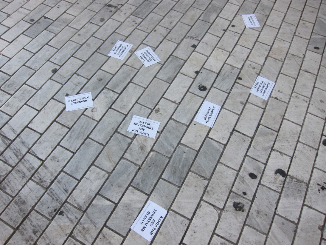 Οι αγορές, μέσα από μια life style τακτική, πλουτίζουν σε βάρος των εργαζομένων αλλά και των καταναλωτών. Επιβάλουν ανάγκες και τρόπους ζωής, περιθωριοποιώντας την ίδια τη ζωή. Καφετέριες, club, μαγαζιά με ρούχα και αυτοκίνητα υπόσχονται ηρεμία και καταξίωση, όταν την ίδια στιγμή σε αυτούς τους χώρους, οι συνθήκες εργασίας είναι τις περισσότερες φορές απάνθρωπες. Εμείς καλούμαστε να επαναπροσδιορίσουμε τις αξίες και τις ανάγκες μας και να τις απελευθερώσουμε από τα χέρια εκείνων που το κέρδος είναι το μοναδικό τους κριτήριο.