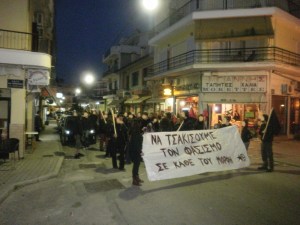 Γύρω στους 130 αντιφασίστες και αντιφασίστριες πορεύτικαν με δυνατό παλμό, αντιρατσιστικά και αντιφασιστικά συνθήματα και γέμισαν την πόλη με τρικάκια και κείμενα.