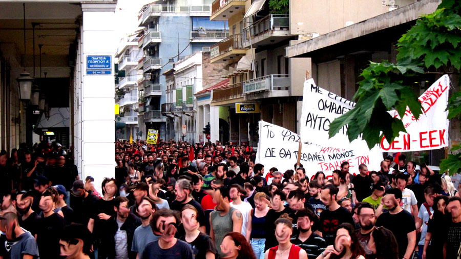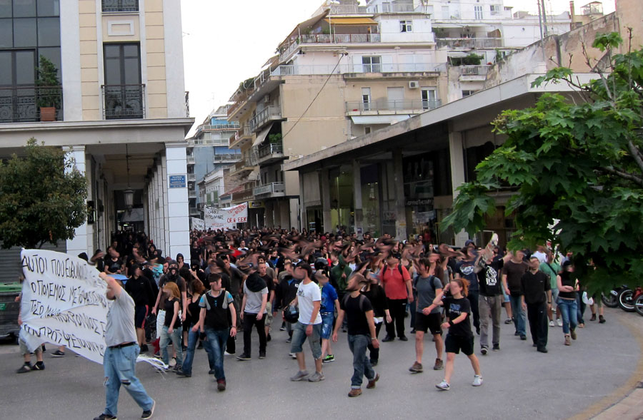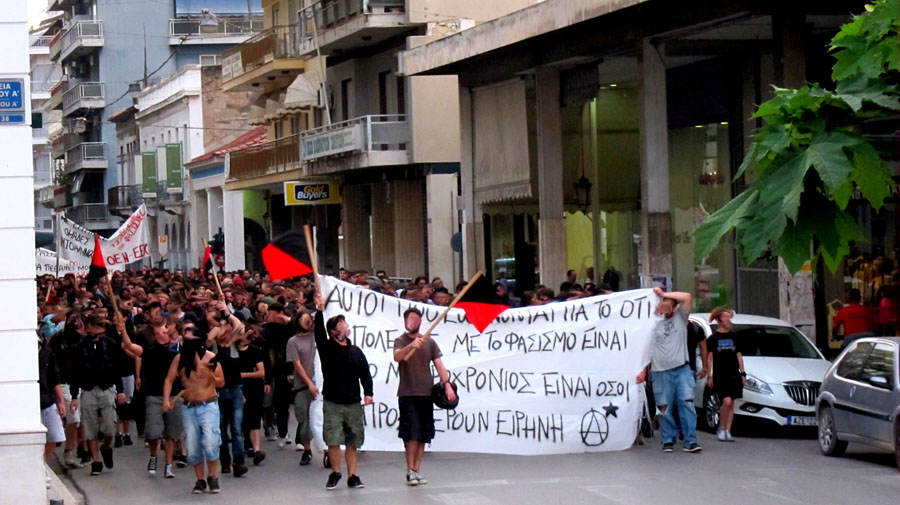 Γύρω στις 8 παρά τέταρτο ξεκίνησε η μεγάλη αντιφασιστική διαδήλωση με τη συμμετοχή 1000 ατόμων που πλημμύρισε με αντιφασιστικά συνθήματα το κέντρο της Πάτρας. Το κεντρικό πανό του αναρχικού μπλοκ έγραφε “αυτοί που ευθύνονται για το ότι ο πόλεμος με το φασισμό είναι τόσο μακροχρόνιος είναι όσοι του προσφέρουν ειρήνη” και ακολουθούσε αυτό της ΟΕΝ-ΕΕΚ που έγραφε “με εργατικές ομάδες αυτοάμυνας να τσακίσουμε τους φασίστες”. Με την αποφασιστικότητα που επέδειξε στο δρόμο και την ισχυρή περιφρούρηση της δεν άφησε περιθώρια αμφιβολίας για το ποιος κατέχει τους δρόμους, εξαλείφοντας επίσης πιθανές βλέψεις των φασιστών για να ξεμυτίσουν από τα γραφεία τους. Μετά το τέλος της πορείας, η συγκέντρωση συνεχίστηκε στην πλατεία Γεωργίου με μαζική συμμετοχή και τελείωσε με πορεία προς το Παράρτημα, μετά τις 10 το βράδυ και μόνο όταν είχε τελειώσει η συγκέντρωση των φασιστών και οι βουλευτές με τη συνοδεία των μπράβων τους είχαν πάρει τον ευχάριστο για αυτούς δρόμο της επιστροφής.