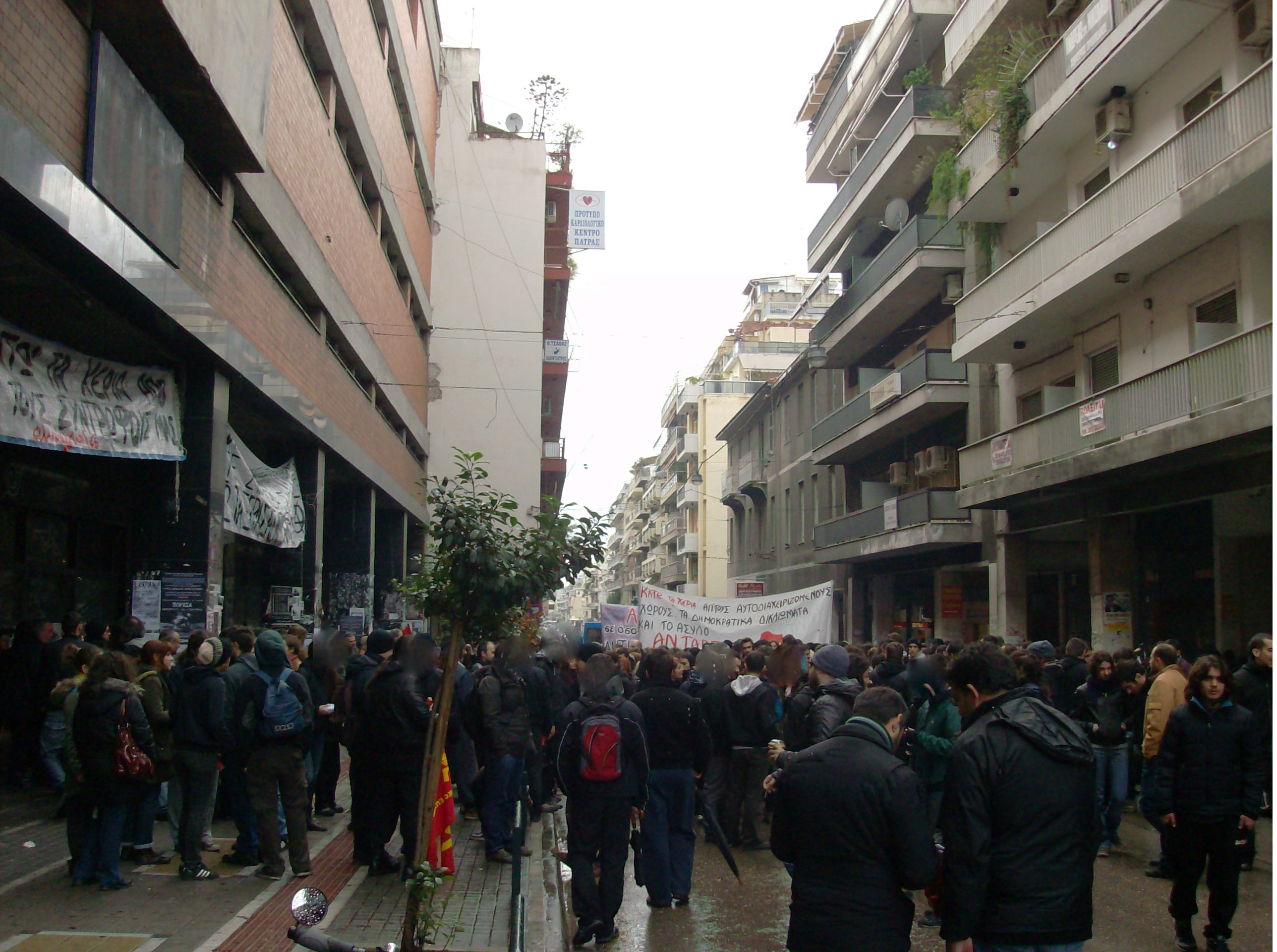 παρέμβαση με μικροφωνική για δίκη συλληφθέντων της εξέγερσης του Δεκ. 2008 στην Πάτρα