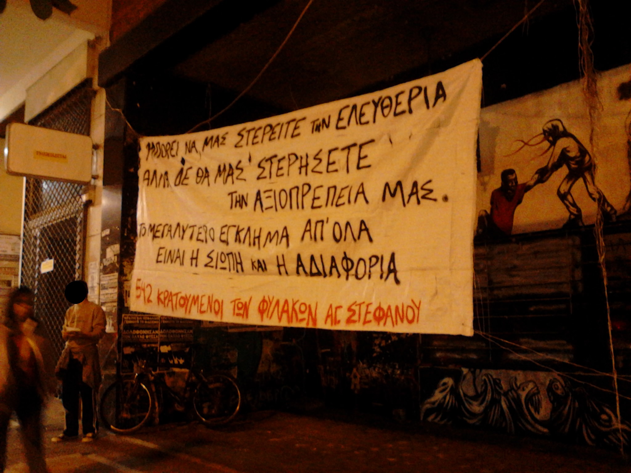 Την Πέμπτη το απόγευμα πραγματοποιήθηκε μικροφωνική στο Παράρτημα για τη δημοσιοποίηση του λόγου των κρατουμένων των φυλακών Αγίου Στεφάνου που αγωνίζονται ενάντια στις άθλιες συνθήκες κράτησης και στην παντελή έλλειψη περίθαλψης στις φυλακές που πρόσφατα κόστιζε και τη ζωή σε έναν κρατούμενο.