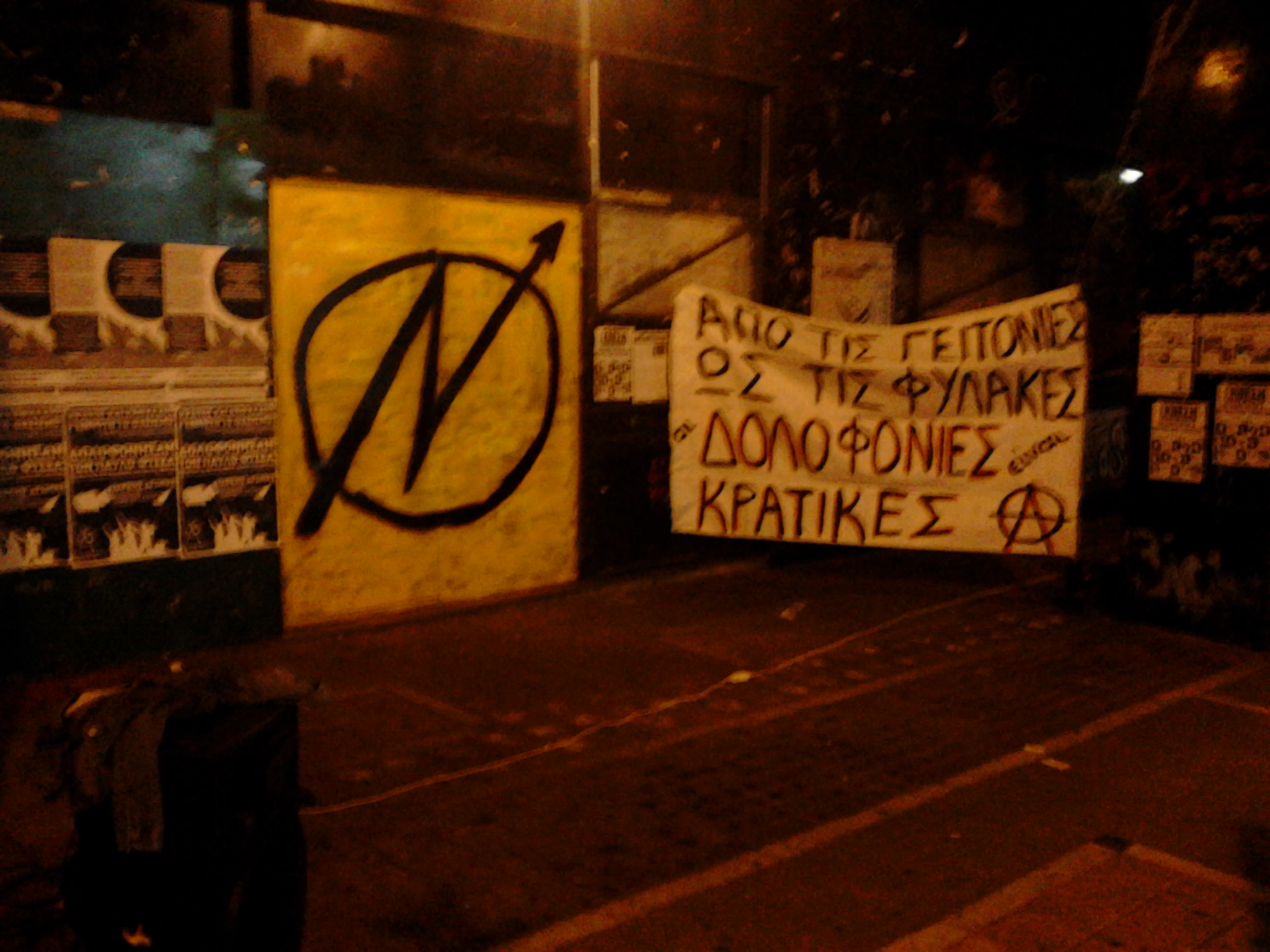 πανό που έχει κρεμαστεί από συντρόφους έξω από το Παράρτημα