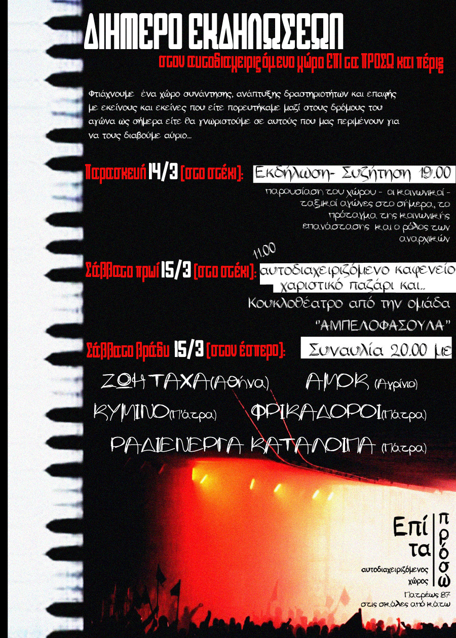 Αυτοδιαχειριζόμενος χώρος Επί τα Πρόσω (Πατρέως 87 στις σκάλες)