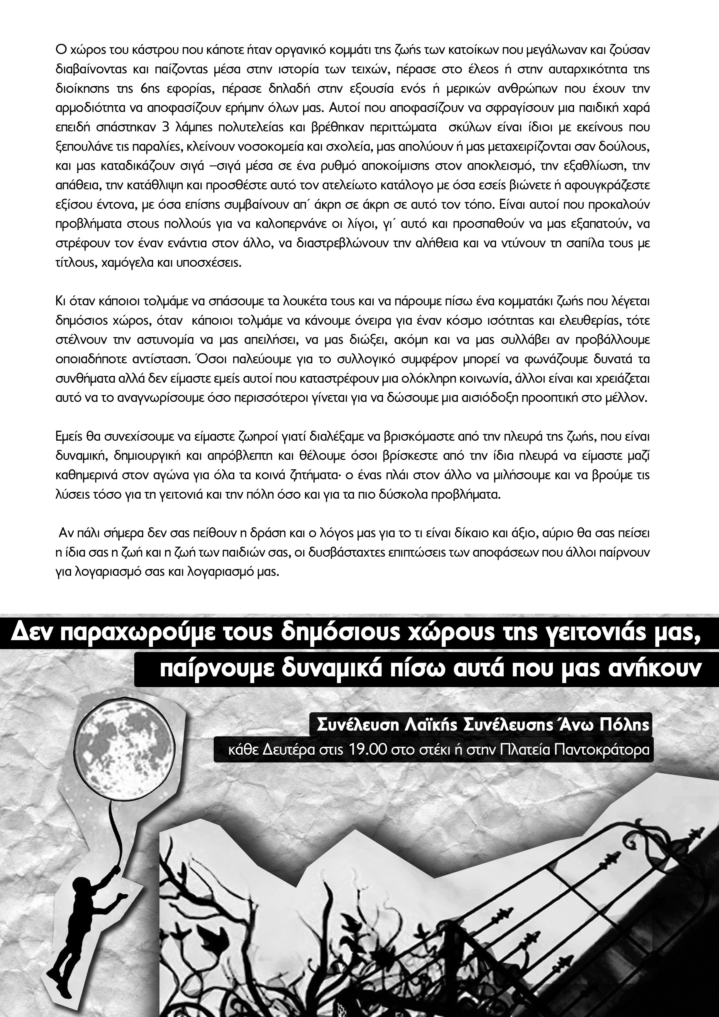Κάλεσμα προς τους γείτονες της Άνω Πόλης και τους κατοίκους της Πάτρας