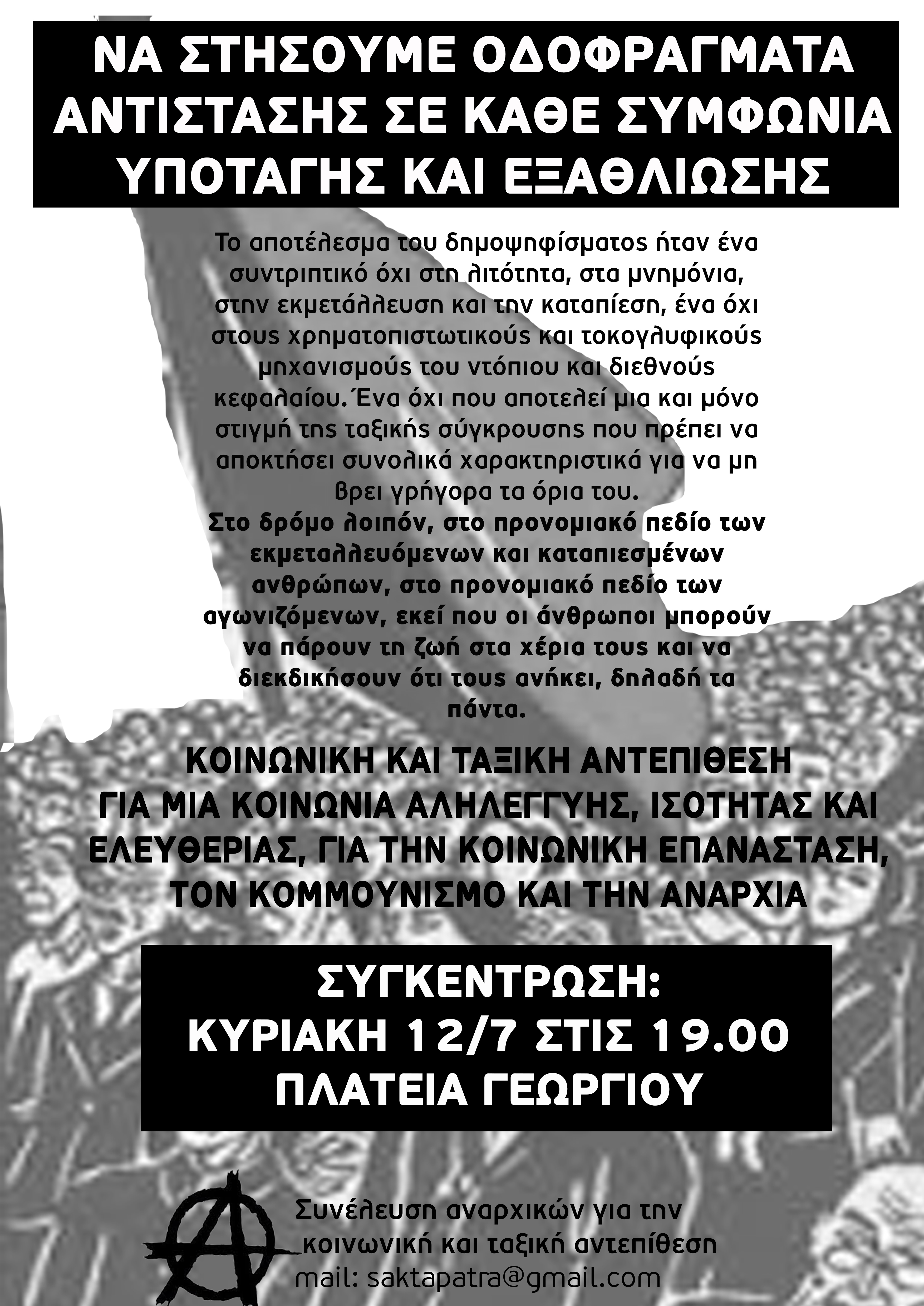 ΣΥΓΚΕΝΤΡΩΣΗ: ΚΥΡΙΑΚΗ 12/7 19:00 ΣΤΗΝ ΠΛΑΤΕΙΑ ΓΕΩΡΓΙΟΥ