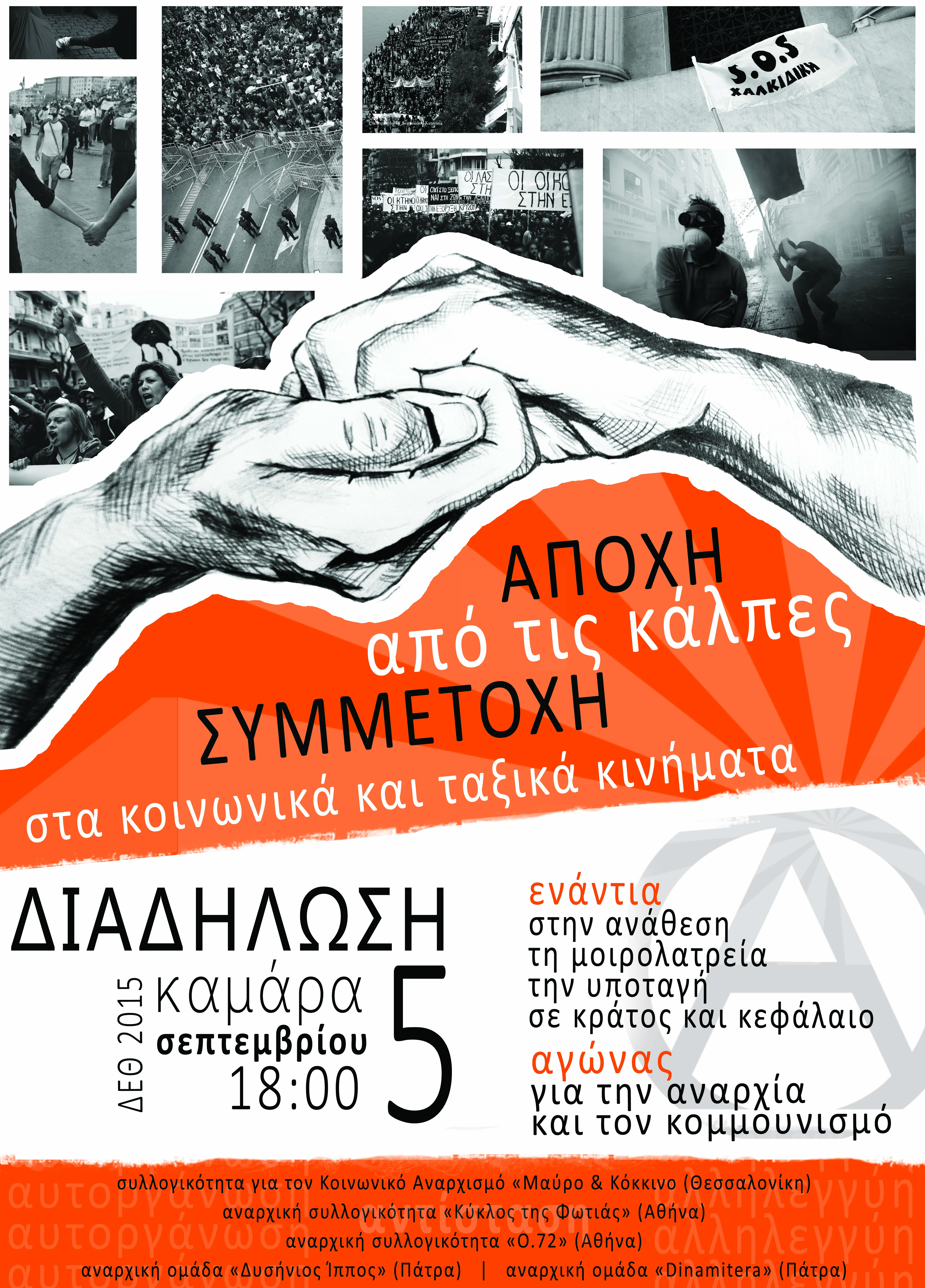 ΔΙΑΔΗΛΩΣΗ: ΣΑΒΒΑΤΟ 5/9 – 18.00 ΚΑΜΑΡΑ (ΘΕΣΣΑΛΟΝΙΚΗ)