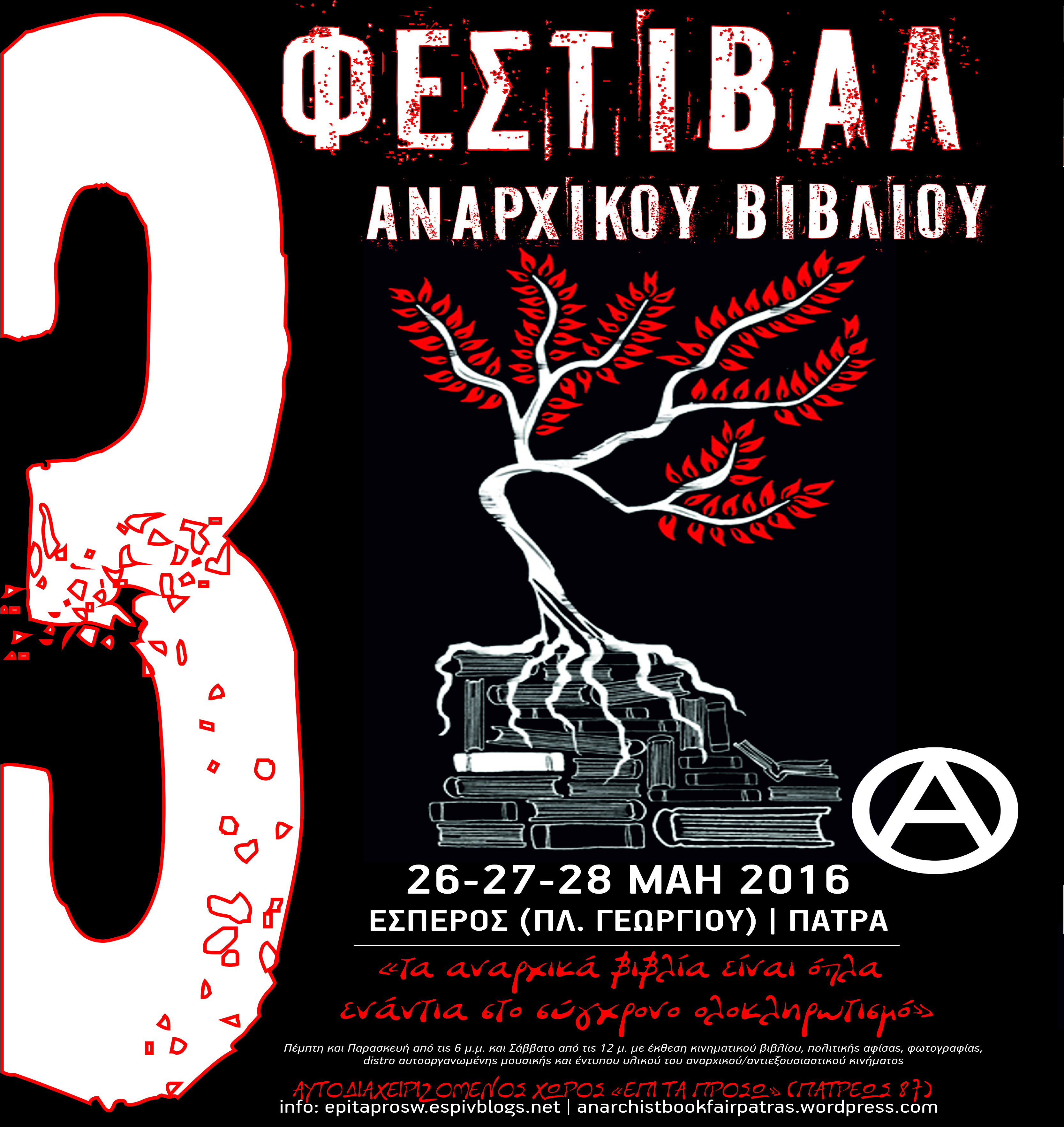 3o Φεστιβάλ Αναρχικού Βιβλίου στην Πάτρα (26-27-28 Μάη 2016)