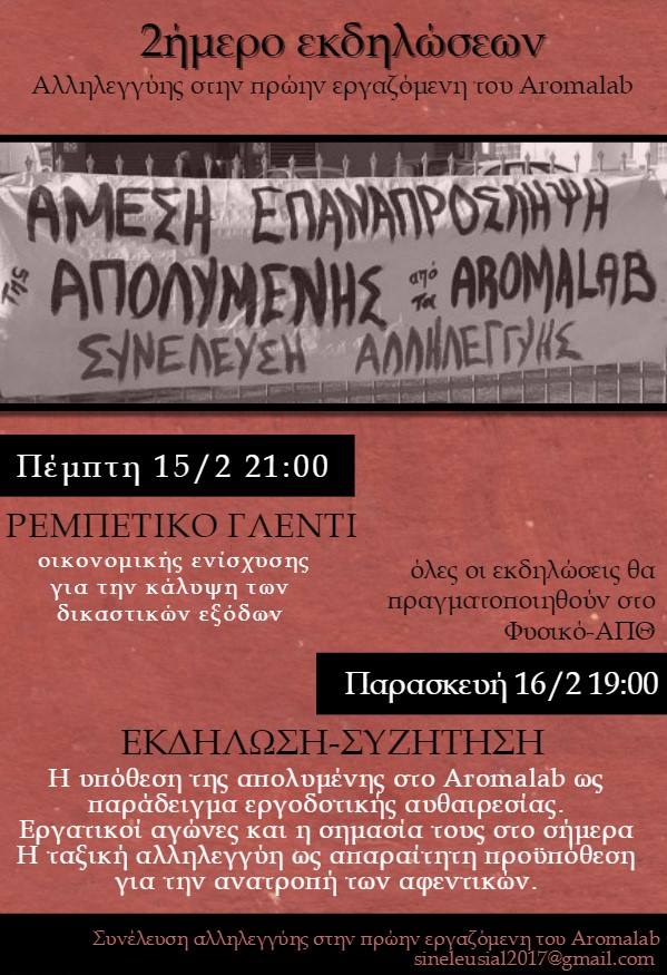 Εκδήλωση-Συζήτηση: Η υπόθεση της απολυμένης στο Aromalab ως παράδειγμα εργοδοτικής αυθαιρεσίας.