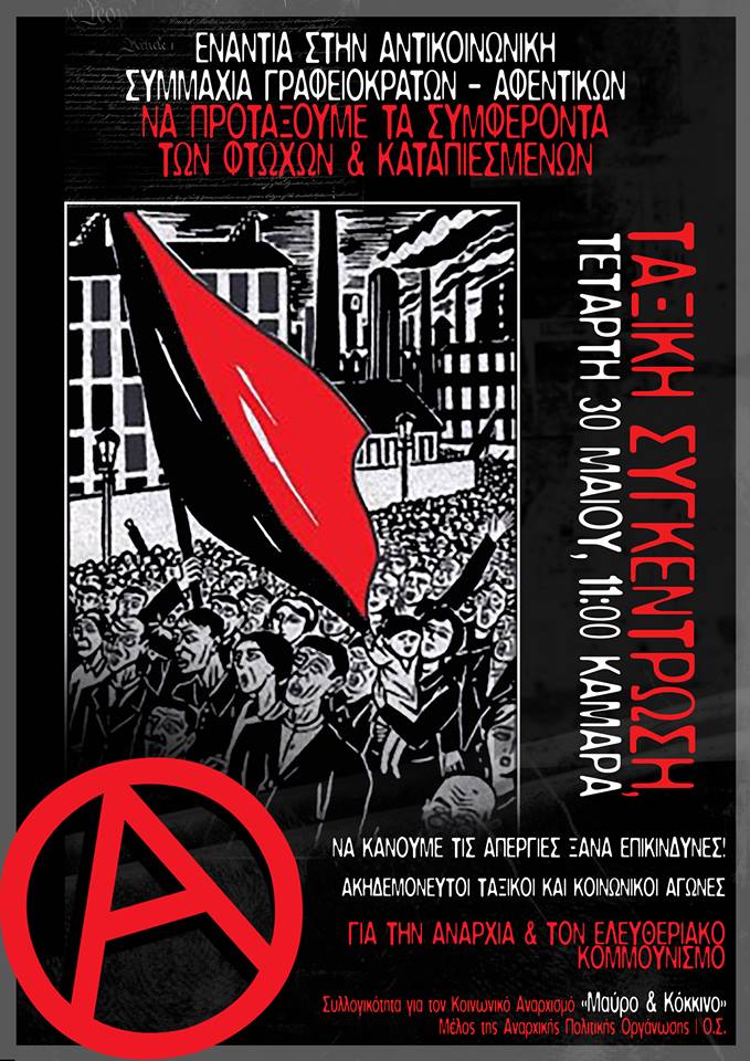 Η μόνη λύση για να αντιπαλέψουμε αποτελεσματικά αυτήν την κατάσταση διαφαίνεται κάθε μέρα και πιο καθαρά. Μέσα από αδιαμεσολάβητους, αντιεραρχικούς και ακηδεμόνευτους αγώνες από τα κάτω, με σωματεία βάσης που οργανώνονται πέρα και ενάντια από τη γραφειοκρατία, με την σύνδεση και τη συνολικοποίηση των κοινωνικών αγώνων μπορούμε να περάσουμε στην αντεπίθεση, ενάντια την εκμετάλλευση και την καταπίεση, να παλέψουμε για να εδραιώσουμε τις κοινωνικές και ταξικές μας αντιστάσεις. Να μη αφήσουμε το κράτος και το κεφάλαιο να καπηλευτούν κεκτημένα αιματοβαμμένων εργατικών αγώνων!