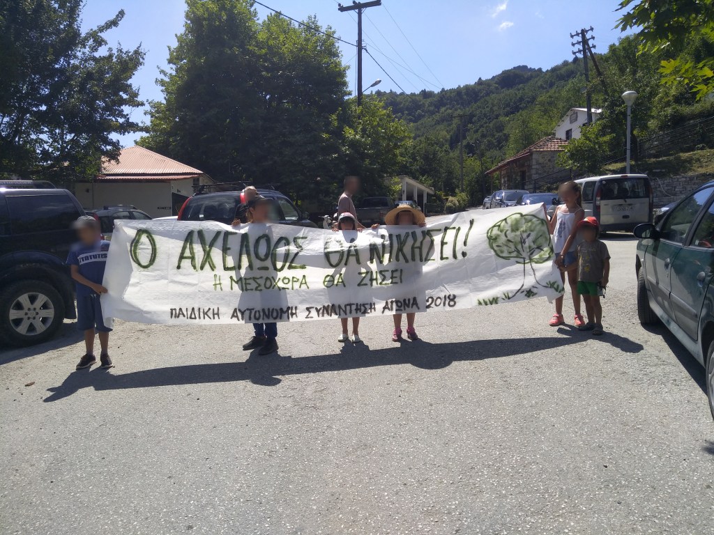 Κυριακή 12 Αυγούστου: Πανό της παιδικής αυτόνομης συνάντησης στην πορεία στο φράγμα