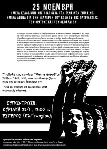 Συγκέντρωση και προβολή με αφορμή την 25η Νοέμβρη από την πρωτοβουλία γυναικών ενάντια στην πατριαρχία