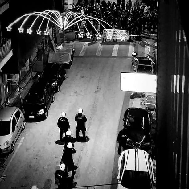 Συμμετείχαμε, μαζί με εκατοντάδες άλλο κόσμο, το βράδυ της 6ης Δεκέμβρη στην πορείαγια τη μνήμη του Αλέξη Γρηγορόπουλου που δολοφονήθηκε από τον ειδικό φρουρό Κορκονέα. Κατά την διάρκεια της σύλληψης αλλά και των προσαγωγών, οι περισσότεροι-ες, δέχτηκαν έντονη βία από τα ΜΑΤ, τόσο σωματική όσο και λεκτική (με χρήση ακραίου σεξιστικού λόγου). Κατά την κράτηση στο αστυνομικό τμήμα, δεν μας επετράπη επικοινωνία με δικηγόρο και παροχή ιατρικής βοήθειας για ώρα σε σύντροφο που είχε χτυπηθεί σοβαρά στο κεφάλι, όσο και σε τραυματισμένη συντρόφισσα που ζήτησε να πάει στο νοσοκομείο.