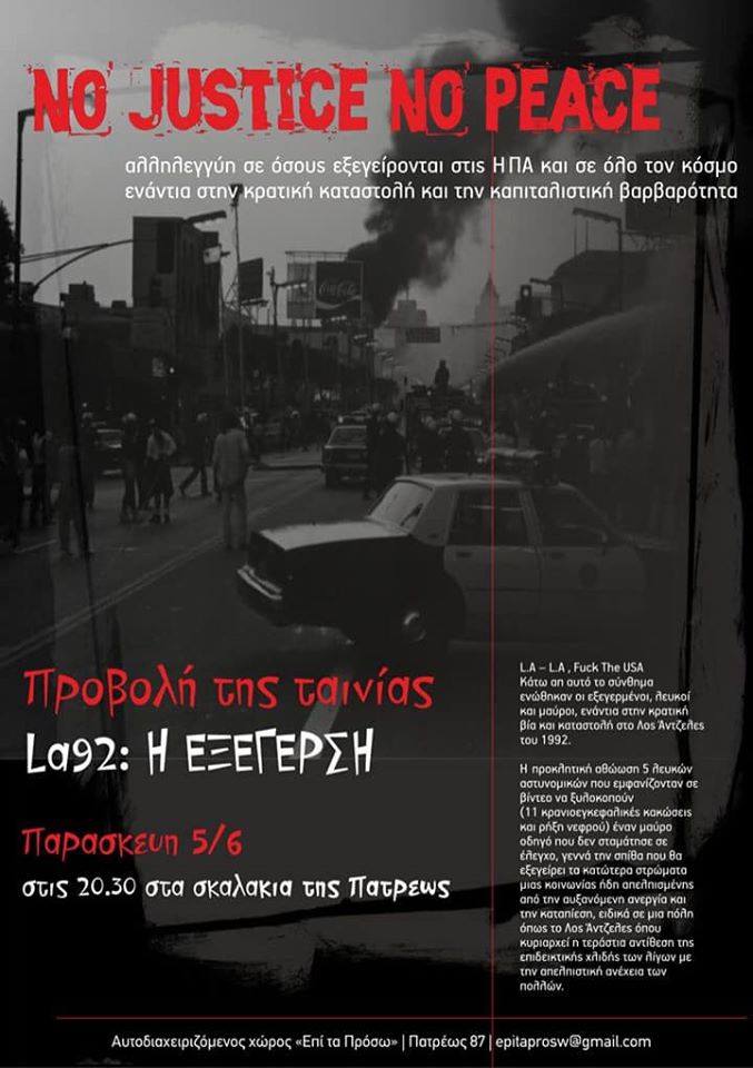 Προβολή του ντοκιμαντέρ “LA 92: Η εξέγερση” – Παρασκευή 5 Ιούνη στις 20.30 στις σκάλες Πατρέως