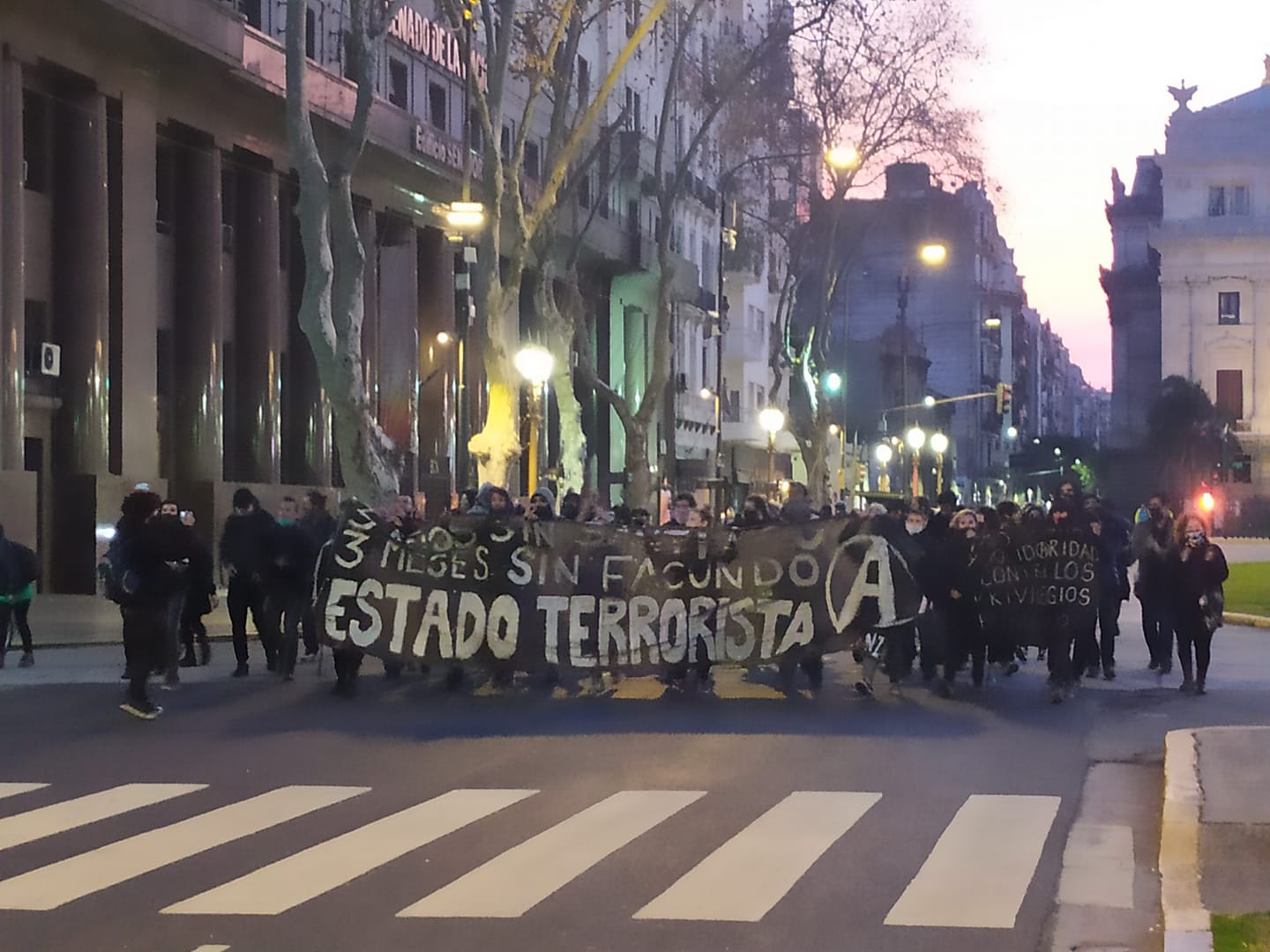 Αντίθετα, το περασμένο Σάββατο, 1η Αυγούστου, πραγματοποιήθηκε μια μικρή διαδήλωση μνήμης από αναρχικούς για τα 3 χρόνια της εξαφάνισης και της δολοφονίας του συντρόφου Santiago Maldonado και απαιτώντας την εμφάνιση του Facundo Astudillo Castro. Η πορεία αυτή κατέληξε σε ένα βάναυσο κυνήγι από την αστυνομία της πόλης του Μπουένος Άιρες.