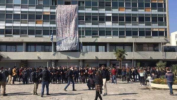 Σήμερα το πρωί πραγματοποιήθηκε κατάληψη της πρυτανείας του ΑΠΘ και μπλοκάρισμα της όποιας λειτουργίας εντός του κτιρίου, από δεκάδες φοιτητές-τριες, αγωνιστές-στριες, μέσω απόφασης φοιτητικών συλλόγων, κόντρα στο νέο αντιεκπαιδευτικό νομοσχέδιο της Κεραμέως, που ψηφίστηκε την περασμένη εβδομάδα στην βουλή. Μερικές ώρες αργότερα και ενώ είχε καλεστεί συνέλευση στην κατειλημμένη πρυτανεία, οι μπάτσοι εισέβαλαν στον χώρο με στόχο να σπάσουν την κατάληψη και να συλλάβουν τους φοιτητές-τριες εντός αυτής. Παράλληλα αλληλέγγυοι-ιες άρχισαν να συγκεντρώνονται έξω από την πρυτανεία και να φωνάζουν συνθήματα ενάντια στο νέο νομοσχέδιο και στην καταστολή. Έχουν πραγματοποιηθεί περισσότερες από 15 προσαγωγές ενώ οι μπάτσοι χτύπησαν την συγκέντρωση των αλληλέγγυων, με χημικά και κρότου λάμψης, έξω από τον χώρο της πρυτανείας. Αυτή την στιγμή πάρα την τρομοκρατία, το ξύλο και τις προσαγωγές οι φοιτητές-τριες έχουν καταλάβει εκ νέου την πρυτανεία. Έχει καλεστεί συνέλευση!