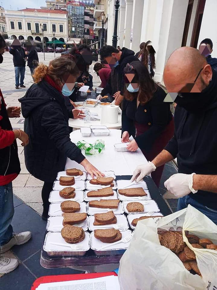 Μετά την ολοκλήρωση της πορείας ακολούθησε μαγείρεμα και διανομή φαγητού από τη Συλλογική Κουζίνα Αλληλεγγύης Πάτρας σε όσους και όσες το έχουν ανάγκη.