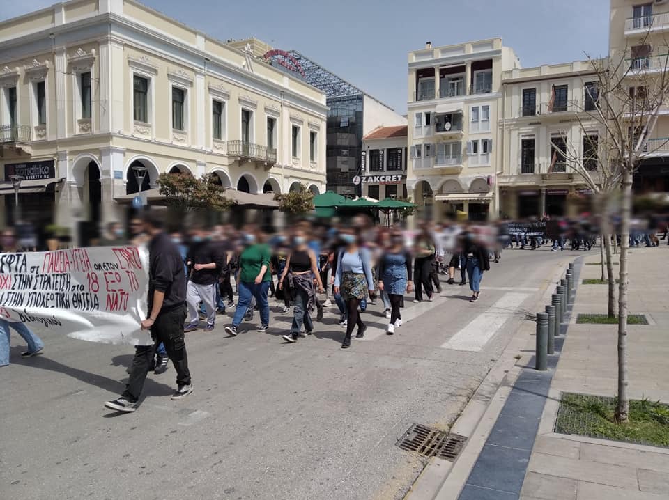 Το Σάββατο 17 Απρίλη, στο πλαίσιο αντίστοιχων καλεσματων σε αρκετές πόλεις πανελλαδικά, πραγματοποιήθηκε αντιπολεμική πορεία στο κέντρο της Πάτρας με τη συμμετοχή περίπου 150-200 ατόμων. Η συγκέντρωση είχε καλεστεί στις 12.00 στην πλατεία Γεωργίου και ακολούθησε διαδήλωση σε κεντρικούς δρόμους.