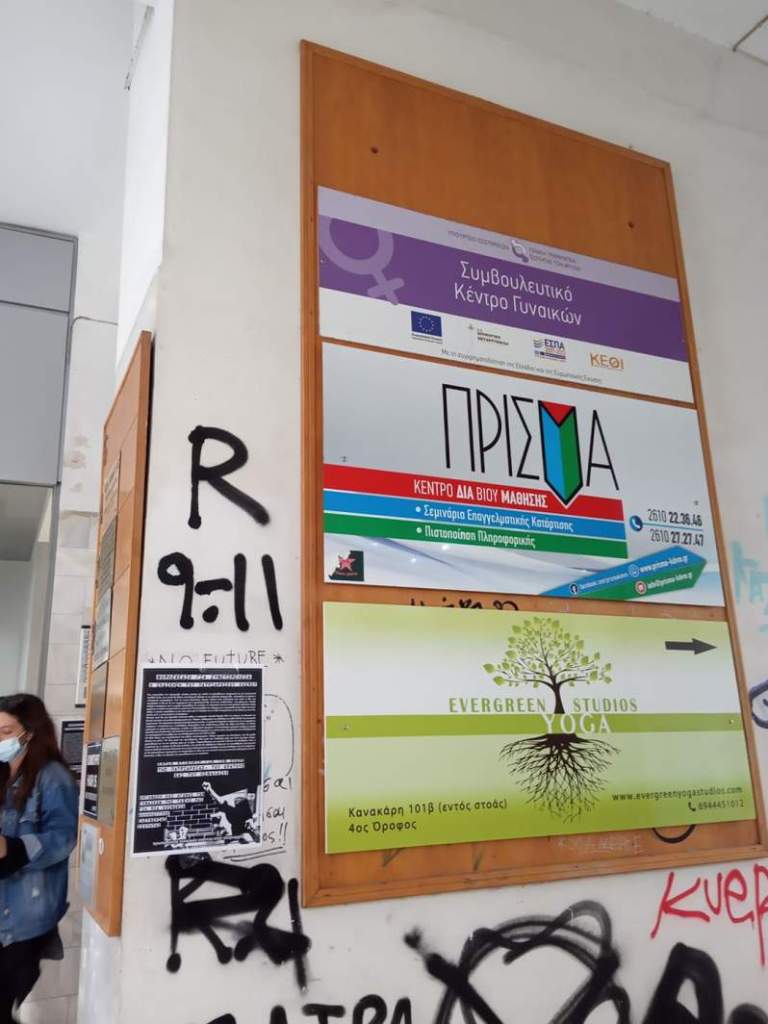 Στη συνέχεια, κολλήθηκαν αφίσες και πετάχτηκαν τρικάκια επίσης στα γραφεία της Γενικής Γραμματείας Ισότητας των Φύλων καθώς και στο Χαμόγελο του Παιδιού.