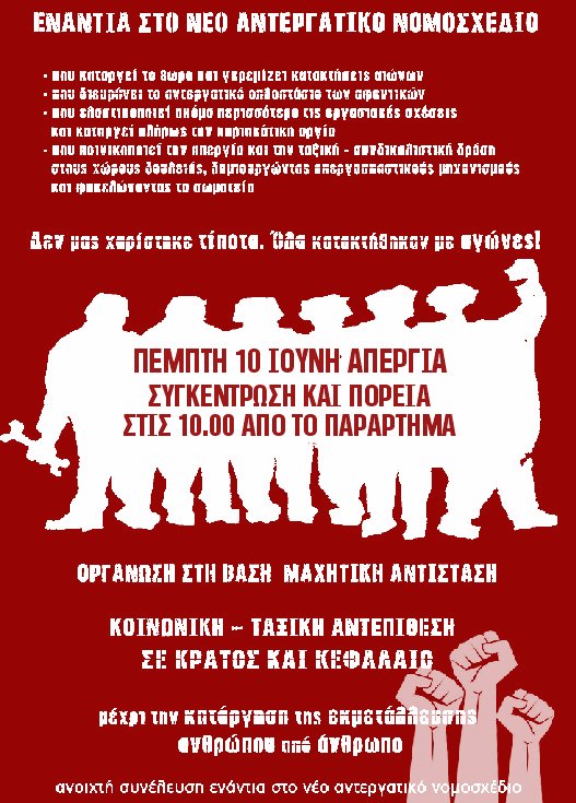 ΝΑ ΜΠΛΟΚΑΡΟΥΜΕ ΤΟ ΝΕΟ ΑΝΤΕΡΓΑΤΙΚΟ-ΑΝΤΙΣΥΝΔΙΚΑΛΙΣΤΙΚΟ ΝΟΜΟΣΧΕΔΙΟ