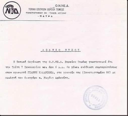 Στις 8 Γενάρη το απόγευμα, στην Πάτρα, περί τα τριάντα στελέχη της οννέδ Πάτρας, με επικεφαλής τον τοπικό πρόεδρο της οργάνωσης, δημοτικό σύμβουλο της παράταξης Νικολόπουλου και γνωστό φασιστοειδές στην τοπική κοινωνία, Γιάννη Καλαμπόκα, επιτίθενται οπλισμένοι κατά των μαθητών στην κατάληψη του Πολυκλαδικού Λυκείου χωρίς όμως να επιτύχουν να διώξουν τους καταληψίες μαθητές και τους καθηγητές που τους υποστήριζαν, καθώς τα γραφεία της ΕΛΜΕ βρίσκονταν τότε ακριβώς από κάτω, στο Παράρτημα. Μια ώρα αργότερα, η ίδια ομάδα καταφέρνει να «σπάσει την κατάληψη στο 3ο Λύκειο στα Ψηλαλώνια, να εισβάλλει στο κτίριο και να διώξει τους καταληψίες. Άμεσα πολύς κόσμος συγκεντρώνεται έξω από το σχολείο και ξεκινούν συγκρούσεις με τους φασίστες, οι οποίοι επιτίθενται με ρόπαλα, τσιμεντόλιθους και σιδερολοστούς. Γύρω στις 23.30 το βράδυ, ομάδα καθηγητών και γονέων επιχειρεί να μπει στο κτίριο με αποτέλεσμα να σωριαστεί θανάσιμα τραυματισμένος από το σιδερολοστό του Καλαμπόκα, ο αγωνιστής καθηγητής και μέλος του Εργατικού Αντι-ιμπεριαλιστικού Μετώπου (ΕΑΜ), Νίκος Τεμπονέρας. Φυσικοί αυτουργοί της δολοφονίας οι Καλαμπόκας, Σπίνος, Μαραγκός, Γραμματίκας και άλλα γνωστά στελέχη της οννέδ που έσπερναν τον τρόμο στα σχολεία. Την πολιτική ευθύνη της δολοφονίας τη χρεώνεται ολόκληρη η κυβέρνηση Μητσοτάκη και ο υπουργός Κοντογιαννόπουλος.