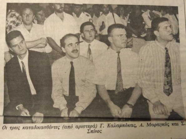 Ο Καλαμπόκας καταδικάζεται πρωτόδικα σε ισόβια, ενώ σταδιακά η ποινή του μειώνεται με αποτέλεσμα να αφεθεί ελεύθερος το Φλεβάρη του 1998. Ο συγκατηγορούμενος του Μαραγκός απαλλάχτηκε με βούλευμα.