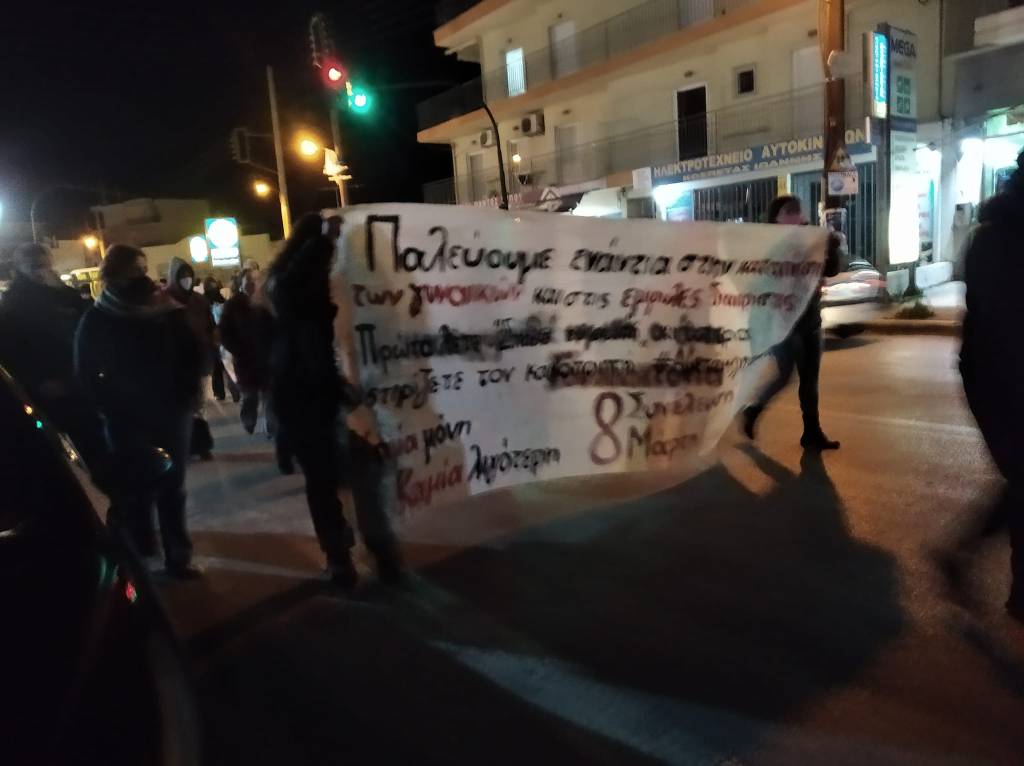 Φωτογραφίες από την πορεία γειτονιάς στην περιοχή της Αγυιάς. Η πορεία πλαισιώθηκε από περίπου 120 άτομα ενώ συμμετείχαν με πανό επίσης η συνέλευση για την 8η Μάρτη, το κκε μλ και ΝΑΡ-νκα.