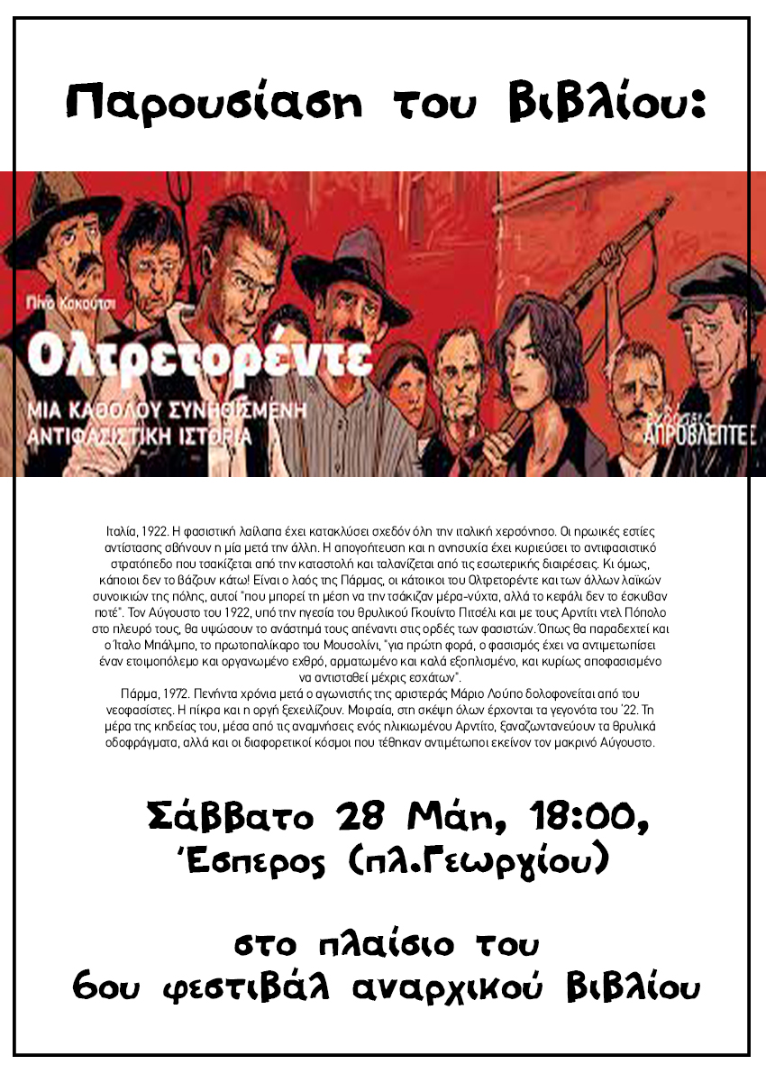 Εκδηλώσεις στο πλαίσιο του 6ου φεστιβάλ αναρχικού βιβλίου: