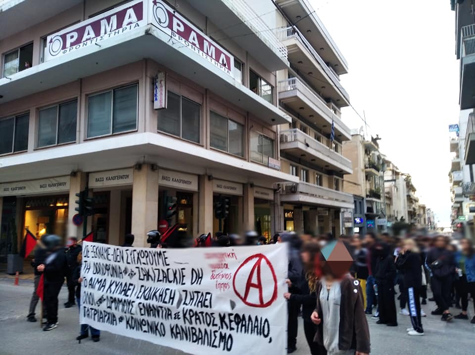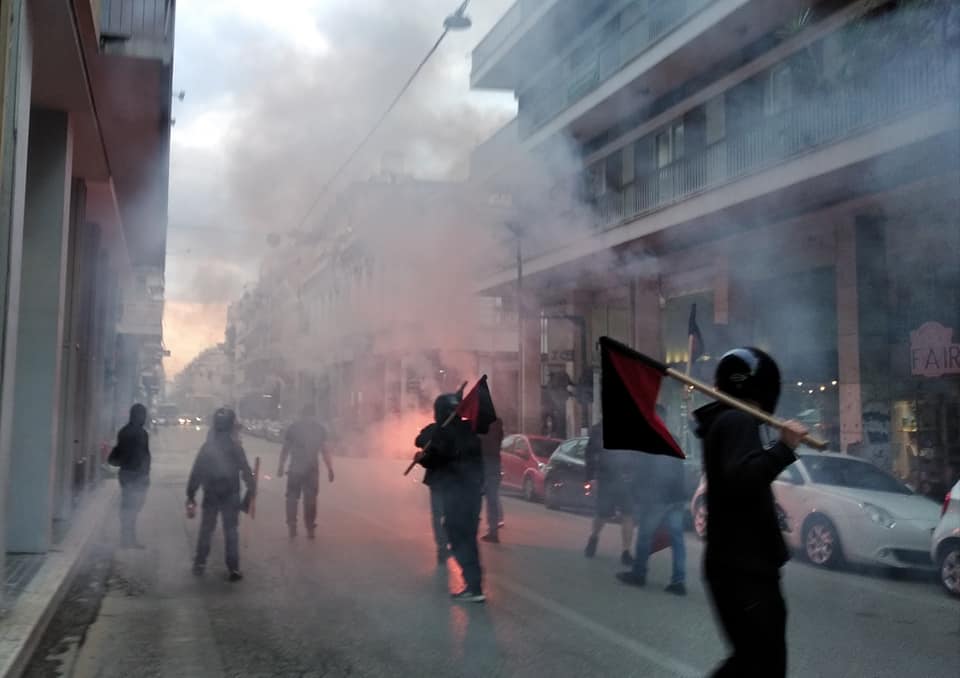 Η πορεία είχε 250 άτομα. Στο αναρχικό μπλοκ που συγκροτήθηκε συμμετείχαν περίπου 120 άτομα, ενώ έγινε επίθεση με πέτρες στη διμοιρία που φύλαγε το αστυνομικό τμήμα.