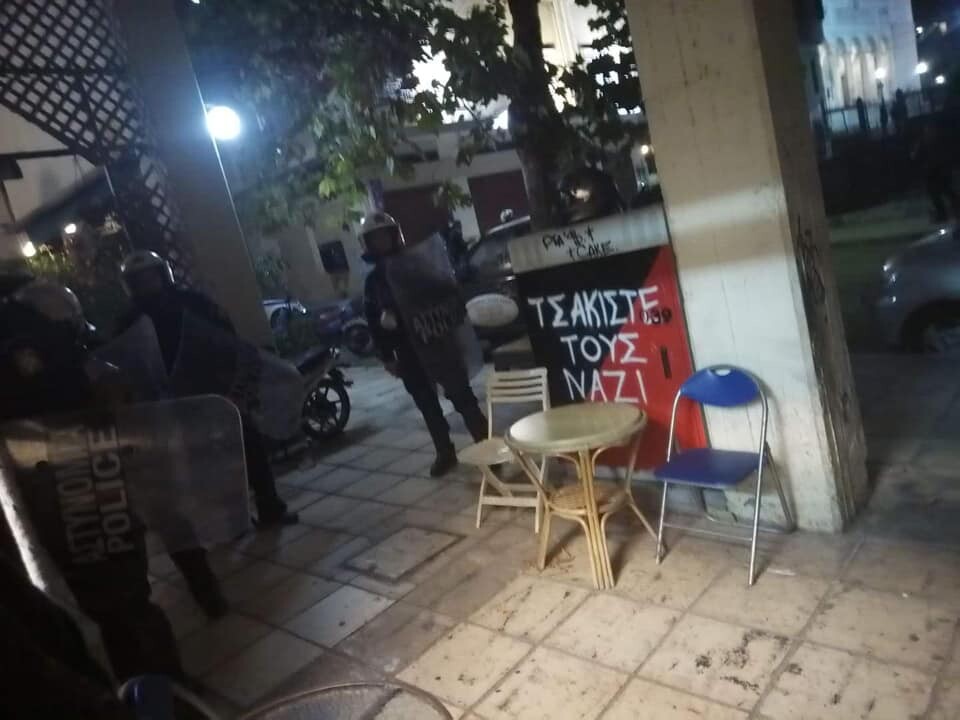 Για περισσότερες από δύο ώρες, ο χώρος του στεκιού ήταν περικυκλωμένος από κάθε λογής κατασταλτικές δυνάμεις, ενώ αλληλέγγυοι σύντροφοι και συντρόφισσες ενώθηκαν και επιχείρησαν να πλησιάσουν εκ νέου στο Ε.τ.Π., το οποίο υπερασπίζονταν αρκετοί σύντροφοι από την ενδεχόμενη εισβολή των μπάτσων.
