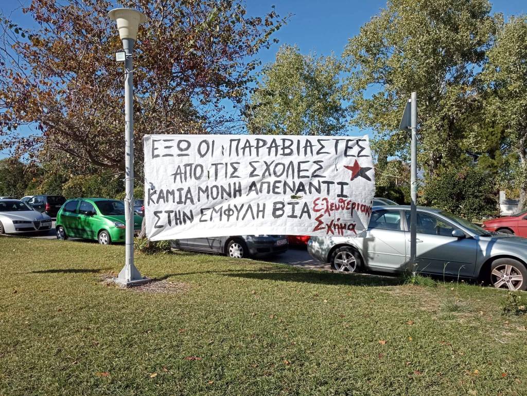 Τη Δευτέρα 21/11 το απόγευμα αναρτήθηκε πανό από την ανοιχτή συνέλευση ενάντια στην έμφυλη βία απέναντι από το ξενοδοχείο «My Way Hotel & Events» στο λιμάνι, την ώρα που διεξαγόταν εκδήλωση για την εξάλειψη της βίας κατά των Γυναικών με ομιλητή-μεταξύ άλλων- τον Άγγελο Τσιγκρή, βουλευτή της Νέας Δημοκρατίας.